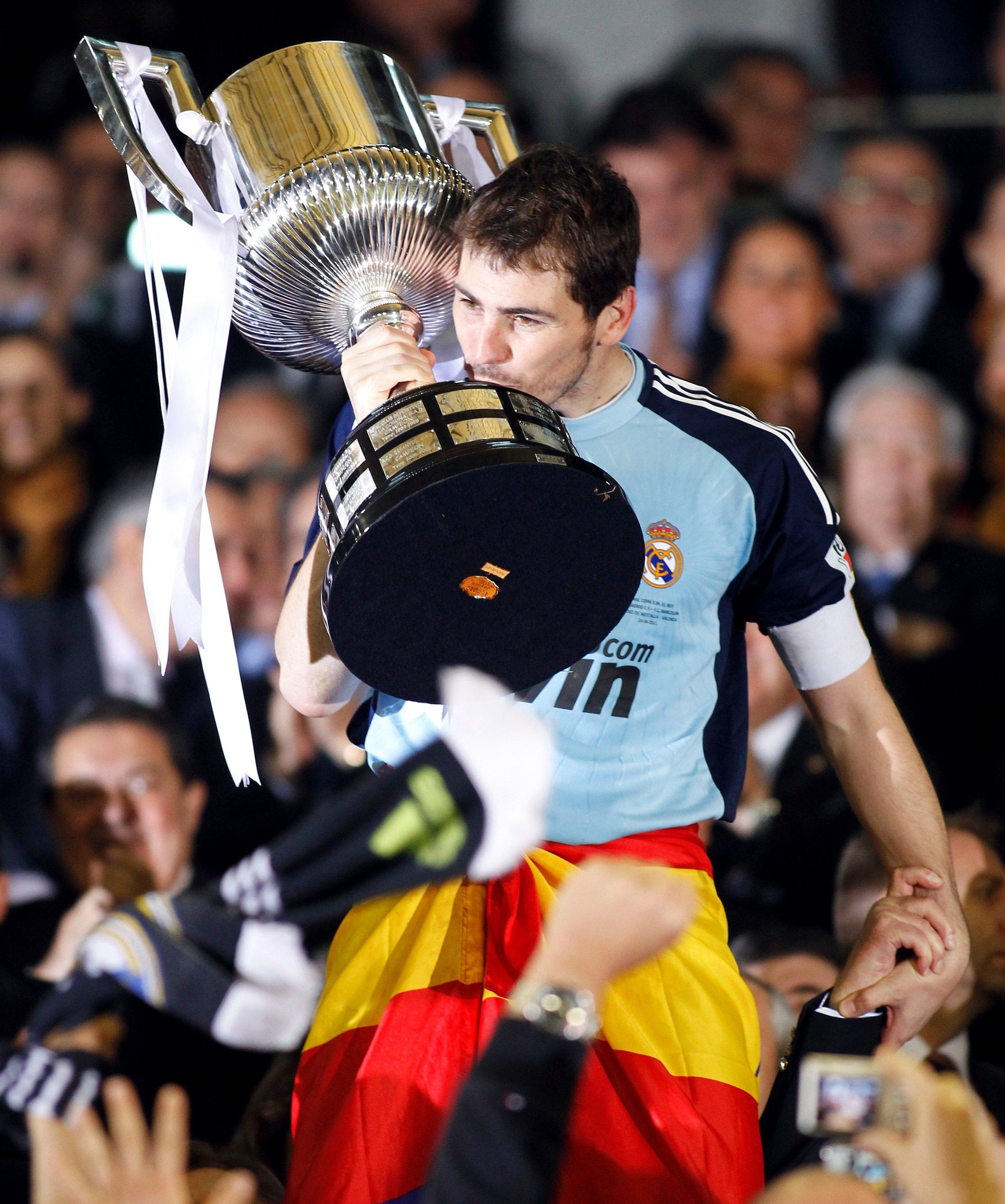 Ο Ίκερ Κασίγιας με το Κύπελλο Ισπανίας της σεζόν 2010/11, το οποίο κατέκτησε η Ρεάλ Μαδρίτης, νικώντας 1-0 την Μπαρτσελόνα στον τελικό του “Μεστάγια” στη Βαλένθια (20/4/2011).