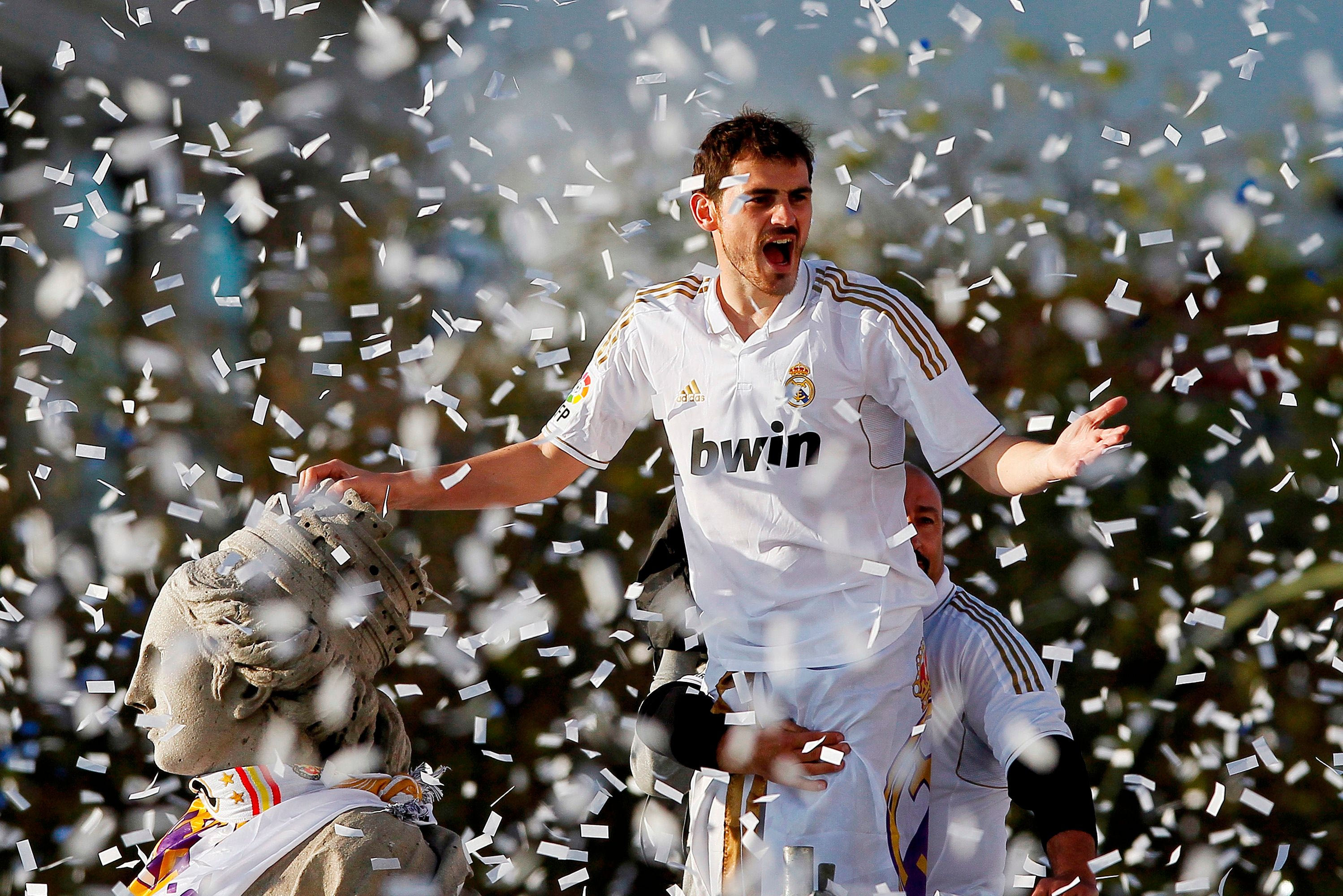 Ο Ίκερ Κασίγιας πανηγυρίζει την κατάκτηση του πρωταθλήματος της σεζόν 2011/12, ανεβασμένος πάνω στο άγαλμα της Κυβέλης στην Plaza de Cibeles της Μαδρίτης.