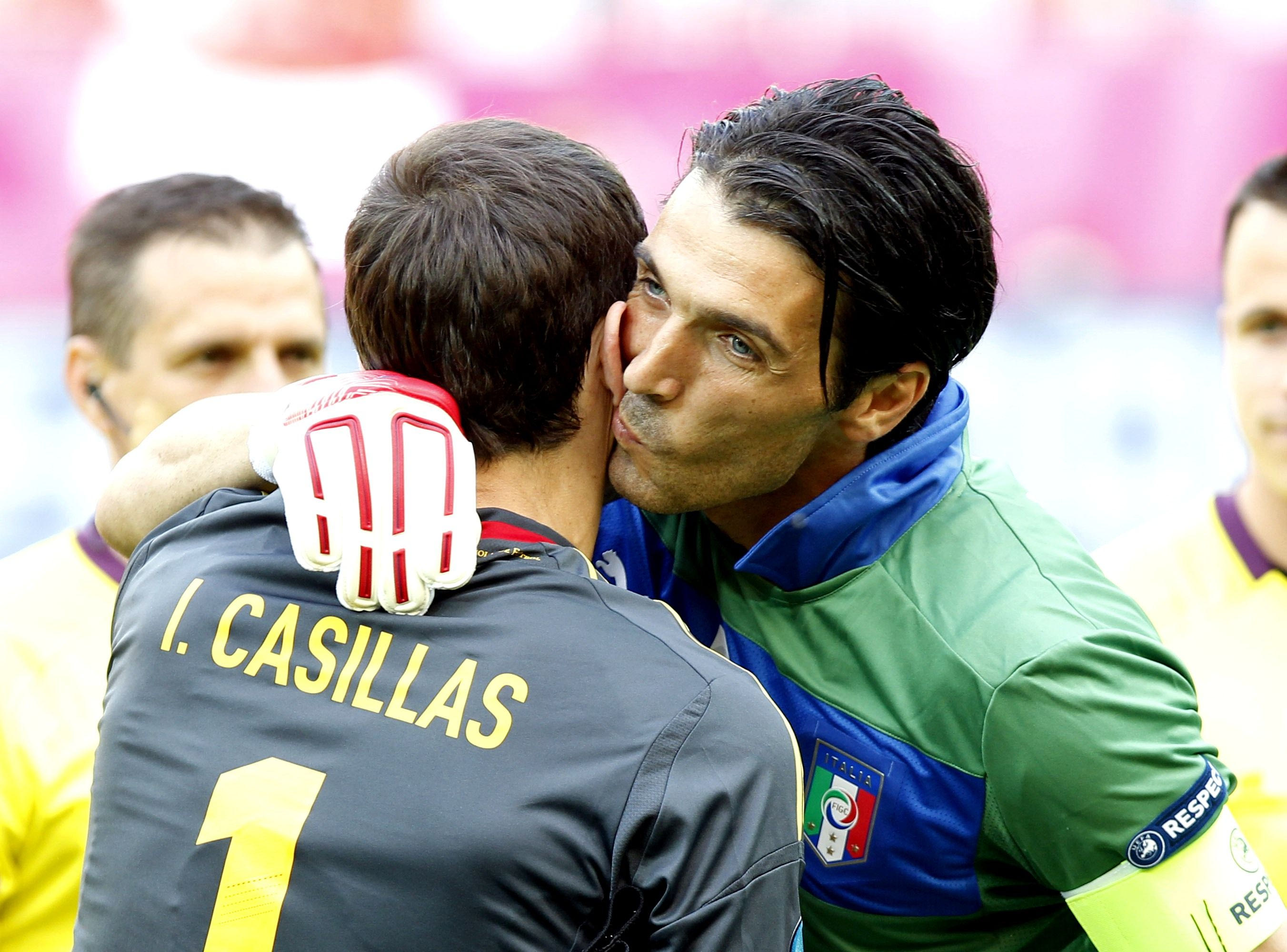 Ο Ίκερ Κασίγιας μαζί με τον Τζίτζι Μπουφόν, στο EURO του 2012. Οι δυο κορυφαίοι τερματοφύλακες της γενιάς τους σε μια αγκαλιά. Ο Ισπανός νίκησε στον τελικό τον Ιταλό και σήκωσε το τρόπαιο.