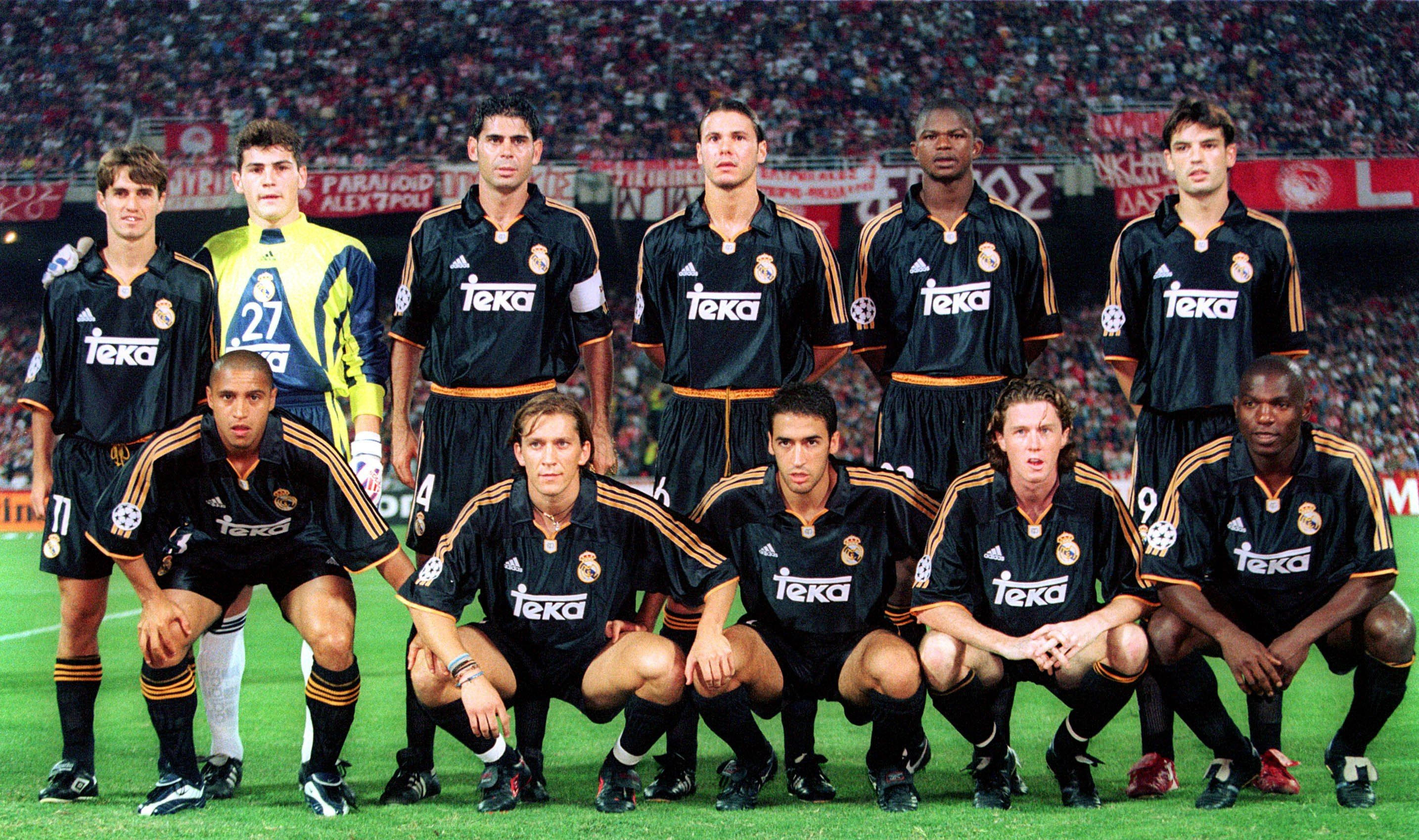 Η αρχική ενδεκάδα της Ρεάλ Μαδρίτης, που αντιμετώπισε τον Ολυμπιακό στις 15 Σεπτεμβρίου του 1999 στο ΟΑΚΑ για τους ομίλους του Champions League 1999/00. Πίσω, από αριστερά, Σάβιο, Κασίγιας, Ιέρο, Ρεδόνδο, Ζούλιο Σέζαρ, Μοριέντες. Μπροστά, από αριστερά, Ρομπέρτο Κάρλος, Σαλγάδο, Ραούλ, ΜακΜάναμαν, Γκέρεμι.
