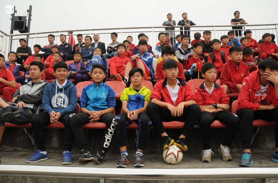 “Σκοπός μας είναι να βελτιώσουμε το κινεζικό ποδόσφαιρο, το οποίο βρίσκεται σε πολύ χαμηλό επίπεδο σε σχέση με τον υπόλοιπο κόσμο”, λέει ο Liu Jiangnan, διευθυντής του σχολείου, ενώ παρακολουθεί το παιχνίδι.