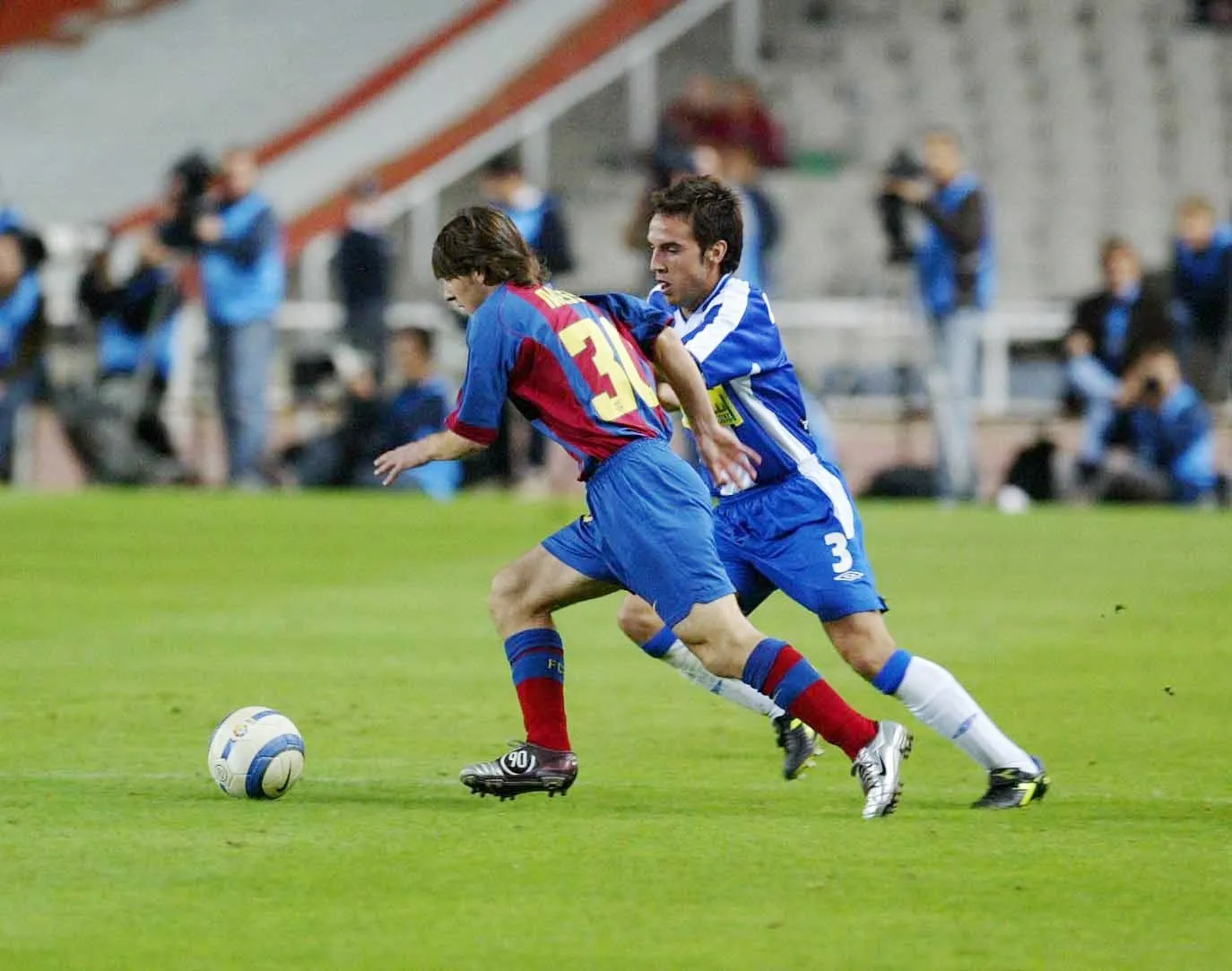 Στο επίσημο ντεμπούτο του με την πρώτη ομάδα της Μπαρτσελόνα, απέναντι στην Εσπανιόλ στο Ολυμπιακό Στάδιο του Μοντζουίκ (16/10/2004)
