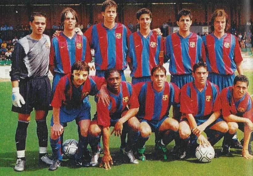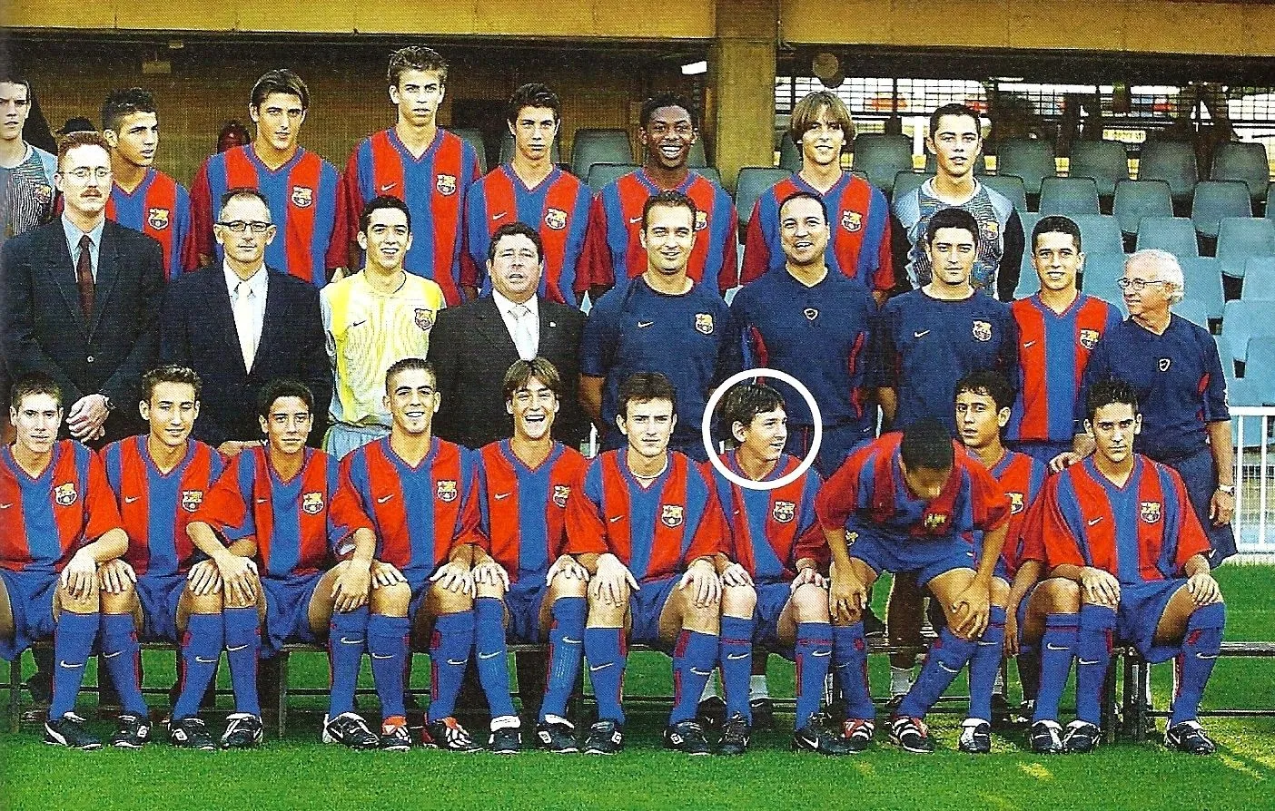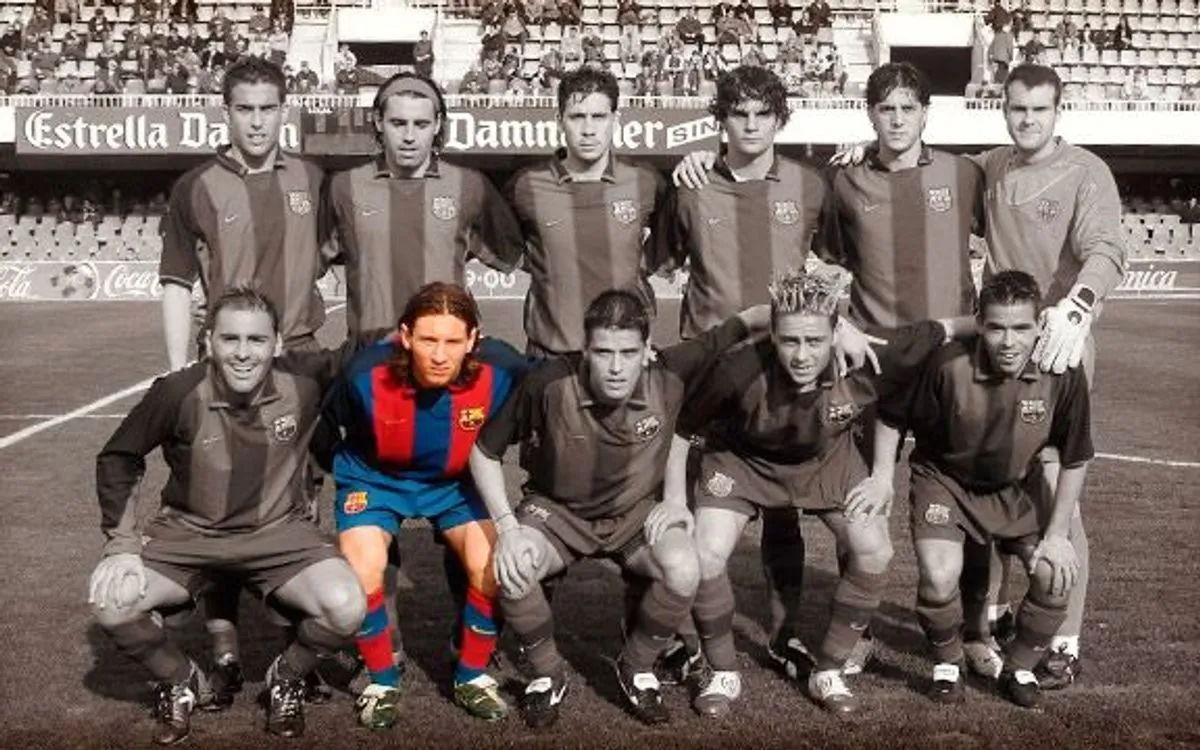 Με την Α' Εφήβων, ο Μέσι κατέκτησε τα πάντα στη σεζόν 2002/03. Στην πίσω σειρά, πρώτος από αριστερά ο Σεσκ Φάμπρεγας, τρίτος από αριστερά ο Ζεράρ Πικέ. "Los cracks de la Masia", Sport