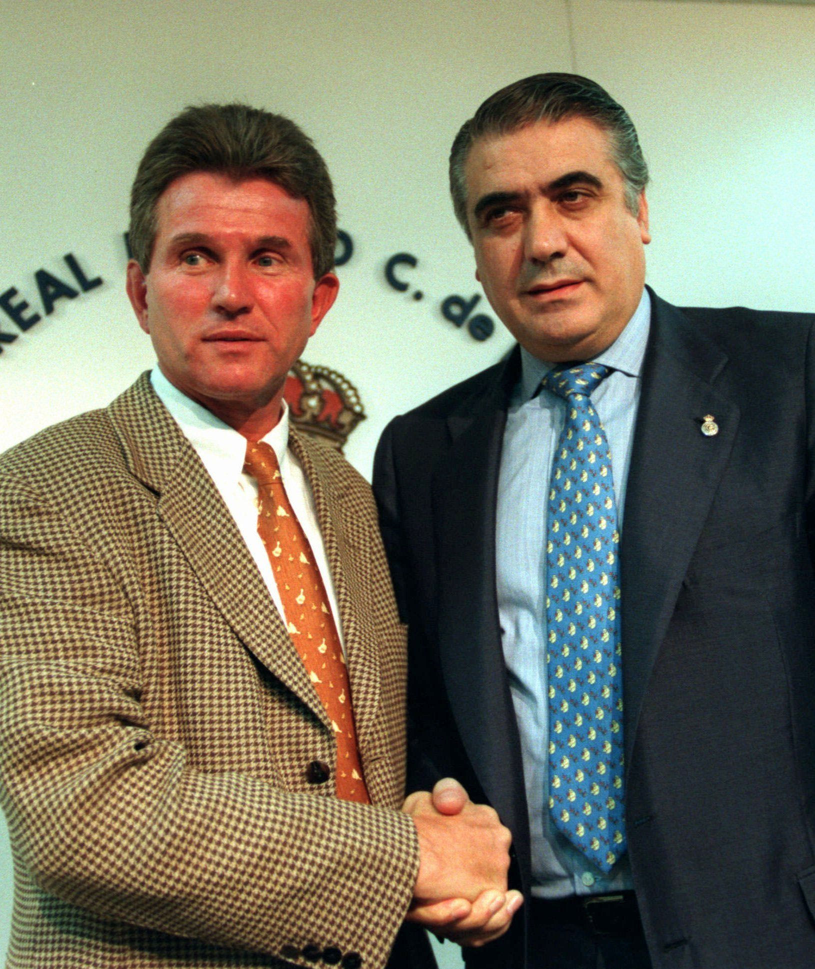 Μετά από το φιάσκο της πρόσληψης του Καμάτσο (έμεινε ως προπονητής μόλις 22 ημέρες), τον πάγκο των “μερένγκες” ανέλαβε ο Γκους Χίντινκ, ο οποίος όμως με τη σειρά του δεν άντεξε πάνω από επτά μήνες, δίνοντας τη σκυτάλη στον Τζον Τόσακ, που ναι μεν ολοκλήρωσε τη σεζόν 1998/99, αλλά απομακρύνθηκε στο ξεκίνημα της επόμενης, για να τον διαδεχτεί ο Βιθέντε ντελ Μπόσκε. Η αλήθεια είναι ότι στην πενταετή παραμονή του στην προεδρία του συλλόγου, ο Σανθ είχε μεγάλες επιτυχίες σε όλα τα επίπεδα, εκτός από τους προπονητές (άλλαξε εννιά φορές τεχνικό). Στην περίοδο 1998/99, η Ρεάλ έχασε το ευρωπαϊκό Σούπερ Καπ από την Τσέλσι (1-0), όμως πήρε το Διηπειρωτικό νικώντας 2-1 την Βάσκο Ντα Γκάμα στον τελικό του Τόκιο. Στο ισπανικό πρωτάθλημα έμεινε 2η, πίσω από την Μπαρτσελόνα και στην Ευρώπη αποκλείστηκε στα προημιτελικά από την Ντιναμό Κιέβου.