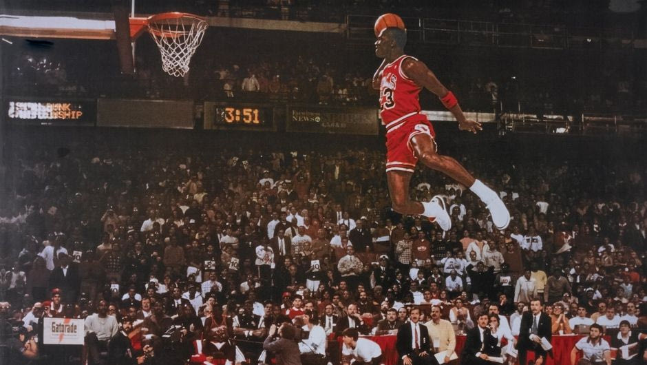 Η μάχη με τον Dominique Wilkins ήταν επική, για να πάρει τον τίτλο στο διαγωνισμό καρφωμάτων ο Michael έπρεπε να κάνει «πενηντάρι» (πέντε δεκάρια δηλαδή) και να τρελάνει το Chicago εκείνο το Σαββατόβραδο. Ο Walter Iooss, φωτογράφος του Sports Illustrated ήταν εκεί, συνεννοήθηκε με τον Jordan να δείξει τη γωνία που θα καρφώσει ακουμπώντας το δάχτυλο στο γόνατό του. Ο Jordan αποδέχτηκε, αλλά στο τελευταίο κάρφωμα δεν έδειξε γωνία. Πήρε φόρα και απλώς πέταξε, γέμισε έμπνευση ολόκληρο τον κόσμο, έκανε τραγούδια να γραφτούν, να ξυπνήσουν ομηρικές παρομοιώσεις: I believe I can fly, I believe I can touch the sky. Πλέον ο Air έχει και εικόνα, ολομόναχος κάρφωσε όπως ολομόναχος πορευόταν μέχρι τότε στην καριέρα του. Ίσως ήταν και ένα σημάδι της μοίρας, η δική του Ιθάκη εκείνο το All-Star Game (στο οποίο κατέκτησε και το βραβείο του MVP την Κυριακή του αγώνα) για όλη την ανθρωπότητα ήταν η γνωριμία με τον κορυφαίο όλων των εποχών.