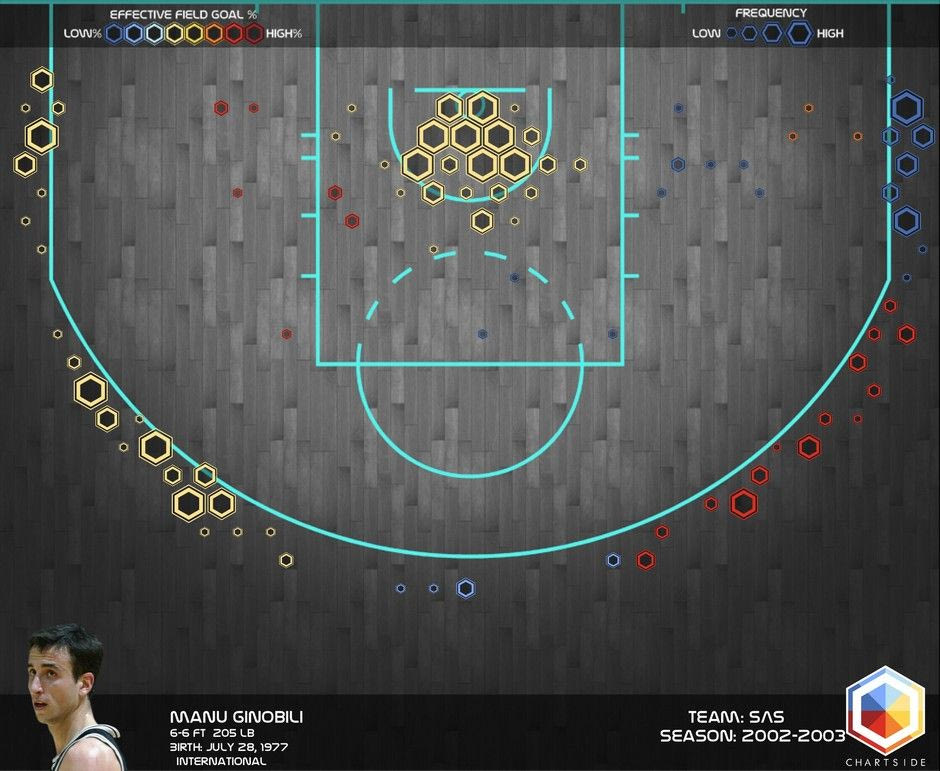 Πρώτη σεζόν βασικός, πρώτο all star game, οι πρώτες πολύ μεγάλες βραδιές σαν πρωταγωνιστής, οι 48 πόντοι εναντίον των Suns. Τα καλύτερα όμως έπονται. Ο Ginobili εξελίσσεται σε μια σπάνια καλαθομηχανή, είναι ο πρώτος – ευρωπαϊκής διδαχής – αθλητικός σουτέρ στην ιστορία του ΝΒΑ, ένας Harden πριν τον Harden. Ειδικά στη δυνατή αριστερή πλευρά του, είναι ασταμάτητος, “γράφει” συνεχώς, σε εκνευριστικό επίπεδο. Και το καλύτερο το είχε κρατήσει για τα play offs.