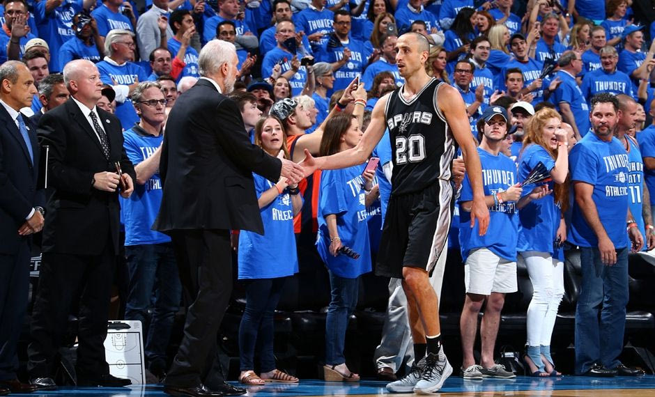 Έξω οι Jazz, έξω οι Clippers, εμπόδιο όμως των Thunder έμοιαζε ανυπέρβλητο. Παρά το γεγονός ότι οι Spurs προηγούνται με 2-0, ισοφαρίζονται και η σειρά “φωνάζει” ότι θα καταλήξει στην Oklahoma. Το καθοριστικό παιχνίδι είναι το πέμπτο. Ο Μανού σηκώνεται από τον πάγκο πριν το τζάμπολ. Βάζει τα χέρια στη μέση και κάθεται στο ημικύκλιο. Ξεκινά βασικός για πρώτη φορά στα play offs της σεζόν, το παιχνίδι είναι νυν υπέρ πάντων ο αγών και δεν υπάρχει χώρος και χρόνος για μελέτη, θα μιλήσει η καρδιά, η δίψα για επιβολή και κυριαρχία.