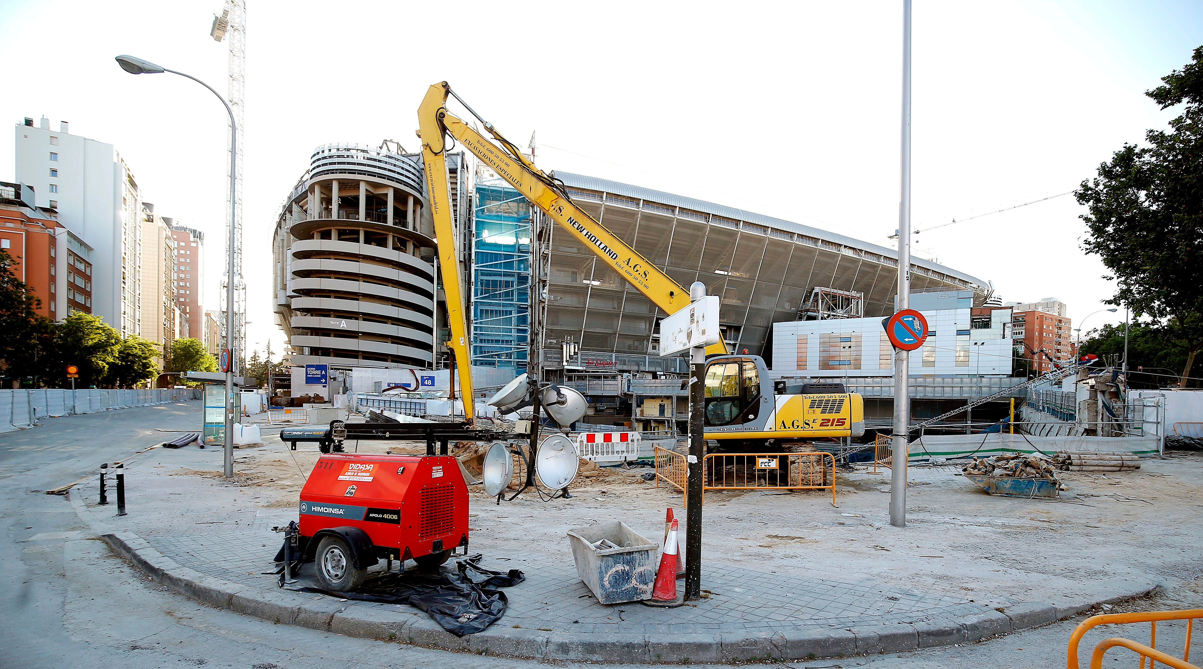 Για δεκαετίες σε εκείνο το σημείο, που στη Μαδρίτη είναι γνωστό ως “La Esquina” (δηλαδή η γωνία), υπήρχε ένα εμπορικό κέντρο που δεν είχε κάποια σχέση με τη Ρεάλ, πέραν του ενοικίου που πλήρωνε στον σύλλογο, αφού στεγαζόταν στο οικοδομικό τετράγωνο που ανήκει στους “μερένγκες”. Οι εργασίες άρχισαν από εκεί, με την πλήρη κατεδάφιση ολόκληρου του κτιριακού συγκροτήματος (τα καταστήματα είχαν κλείσει από πέρυσι). Εκεί θα κατασκευαστεί μια πλατεία έκτασης 5.500 τ.μ., με δενδροφύτευση, γκαζόν και τις δυο εισόδους για το καινούργιο υπόγειο πάρκινγκ του γηπέδου. Τέλος, πηγαίνουμε στη δυτική πλευρά, εκείνη που βρίσκεται δίπλα στην Καστεγιάνα. Εκεί θα δημιουργηθεί ένα ακόμα πάρκο με την ονομασία Nueva Plaza και έκταση 20.000 τετραγωνικών μέτρων.