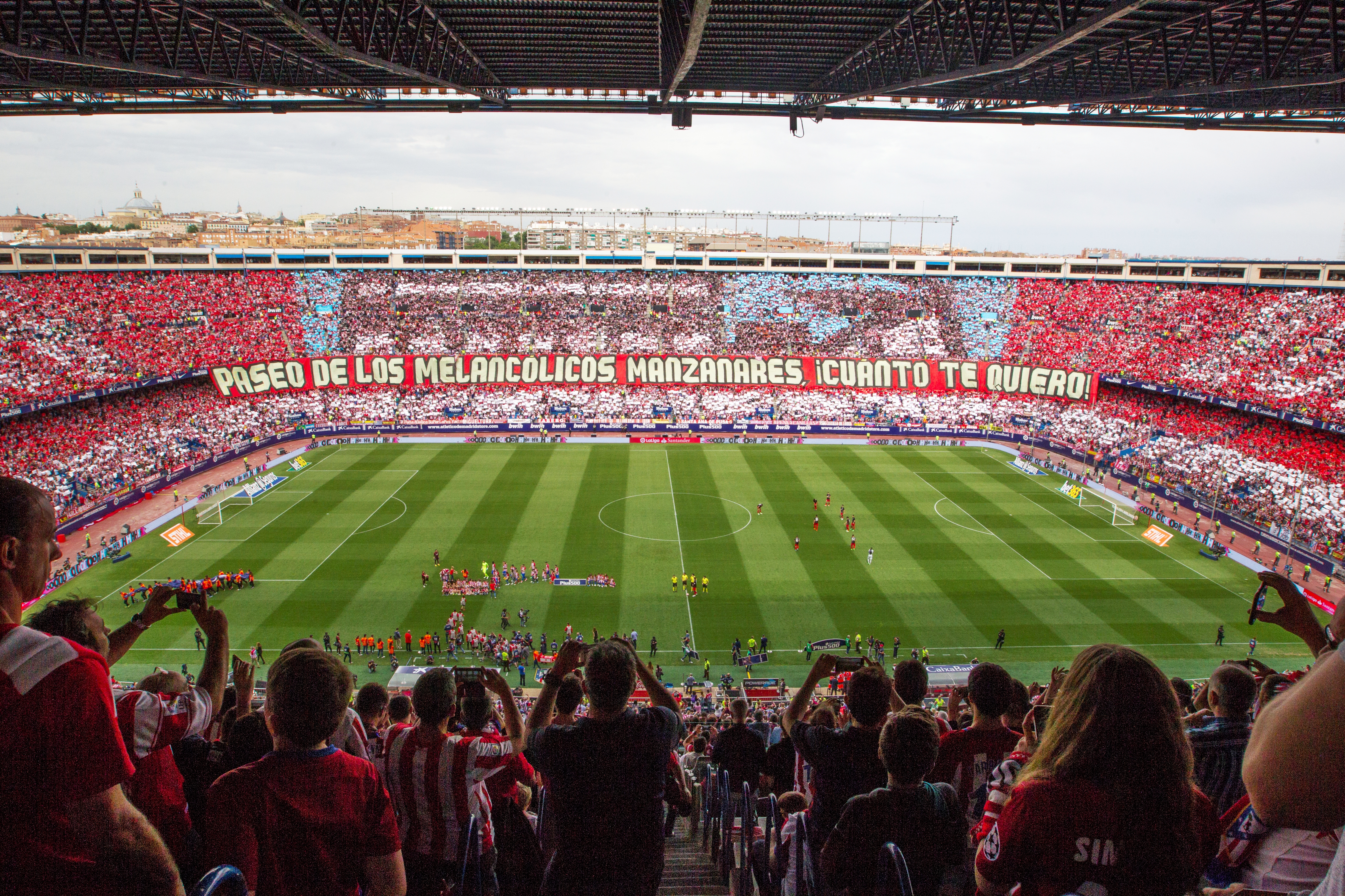 Η φιέστα ξεκίνησε με δυο μοναδικές εικόνες. Πρώτα, η συγκινημένη κυρία Μαργαρίτα απέθεσε το τελευταίο μπουκέτο λουλούδια στο κόρνερ, ως φόρο τιμής στα στημένα του Μιλίνκο Πάντιτς, ενώ λίγο αργότερα, πριν τη σέντρα, εμφανίστηκε στη μια κερκίδα ένα τεράστιο πανό που έγραφε: “Paseo de los melancólicos. Manzanares, cuánto te quiero”, δηλαδή “Οδός των μελαγχολικών. Μανθανάρες, πόσο σε αγαπώ”. Και ολοκληρώθηκε με την κορύφωση που ταίριαζε σε ένα τέτοιο αντίο. Στο γήπεδο μπήκε το μέλος υπ’ αριθμόν 1 στην ιστορία του “Καλντερόν”, Χοσέ Λουίς Ροντρίγκεθ, υποβασταζόμενος από τον πρόεδρο Ενρίκε Θερέθο, ενώ το χορτάρι καλύφθηκε με τα χρώματα της ομάδας, κόκκινο και λευκό, δίπλα σε μια τεράστια σημαία.