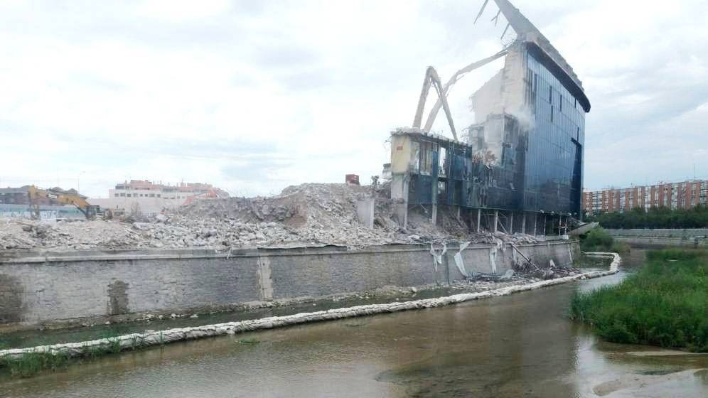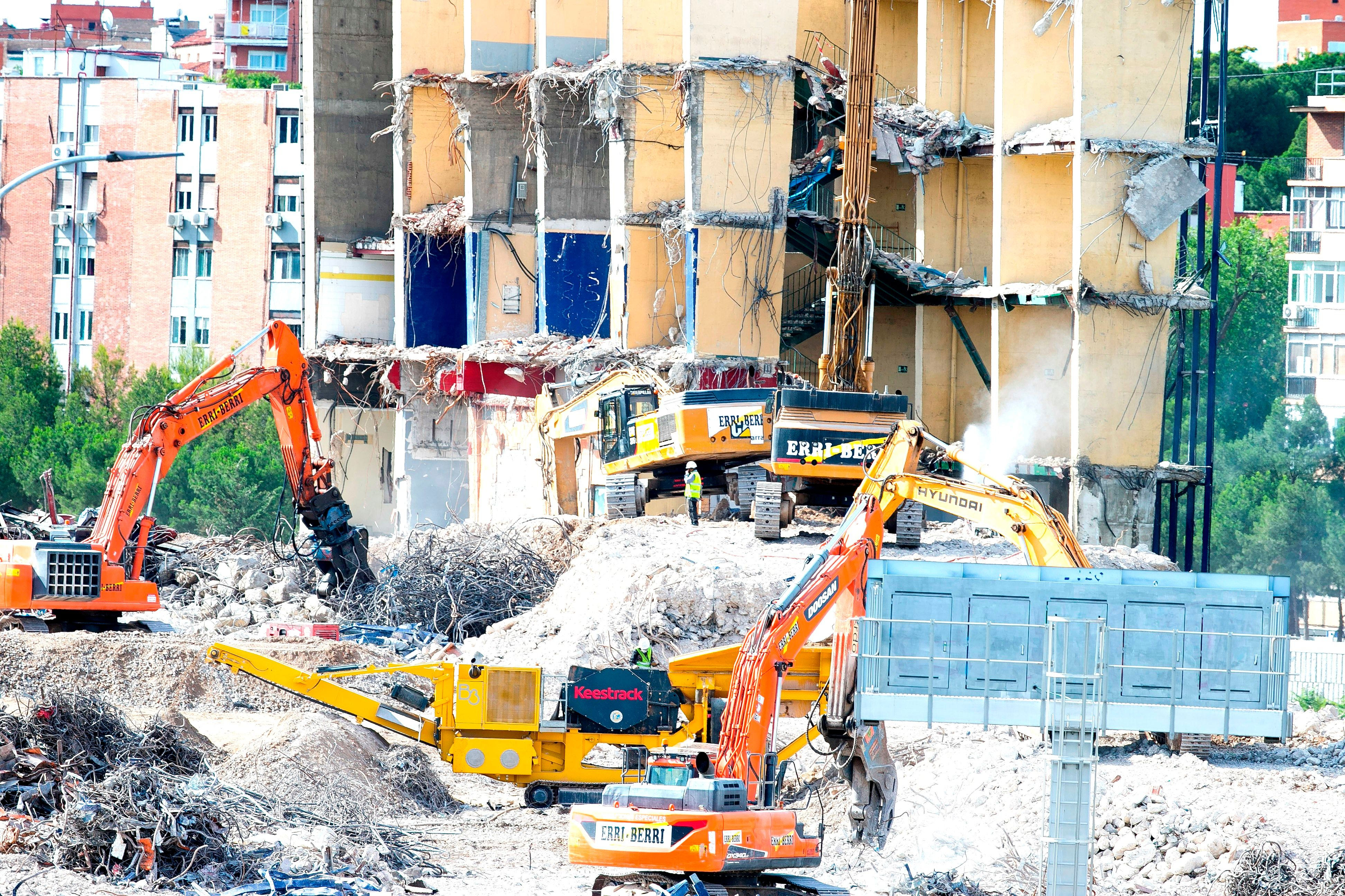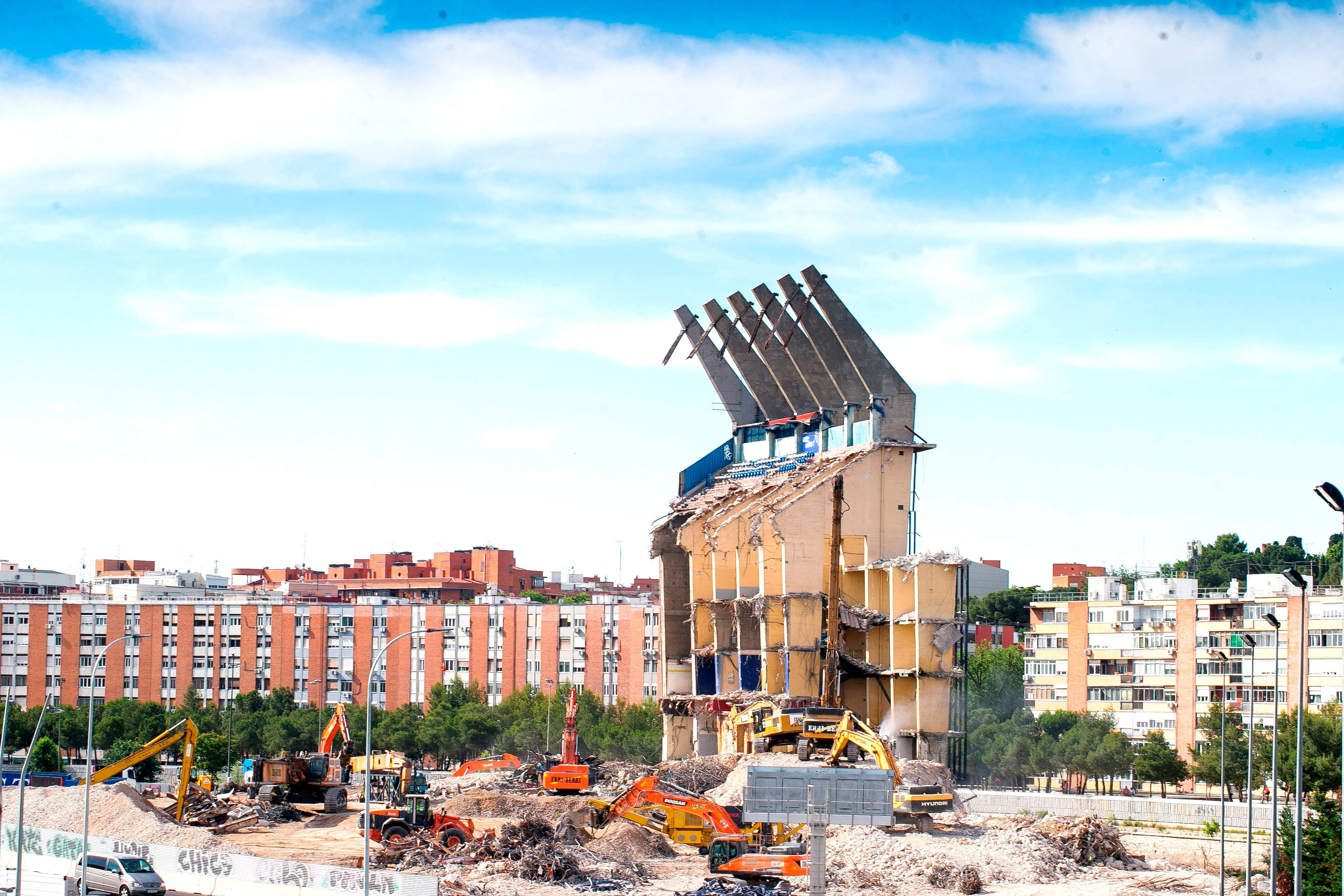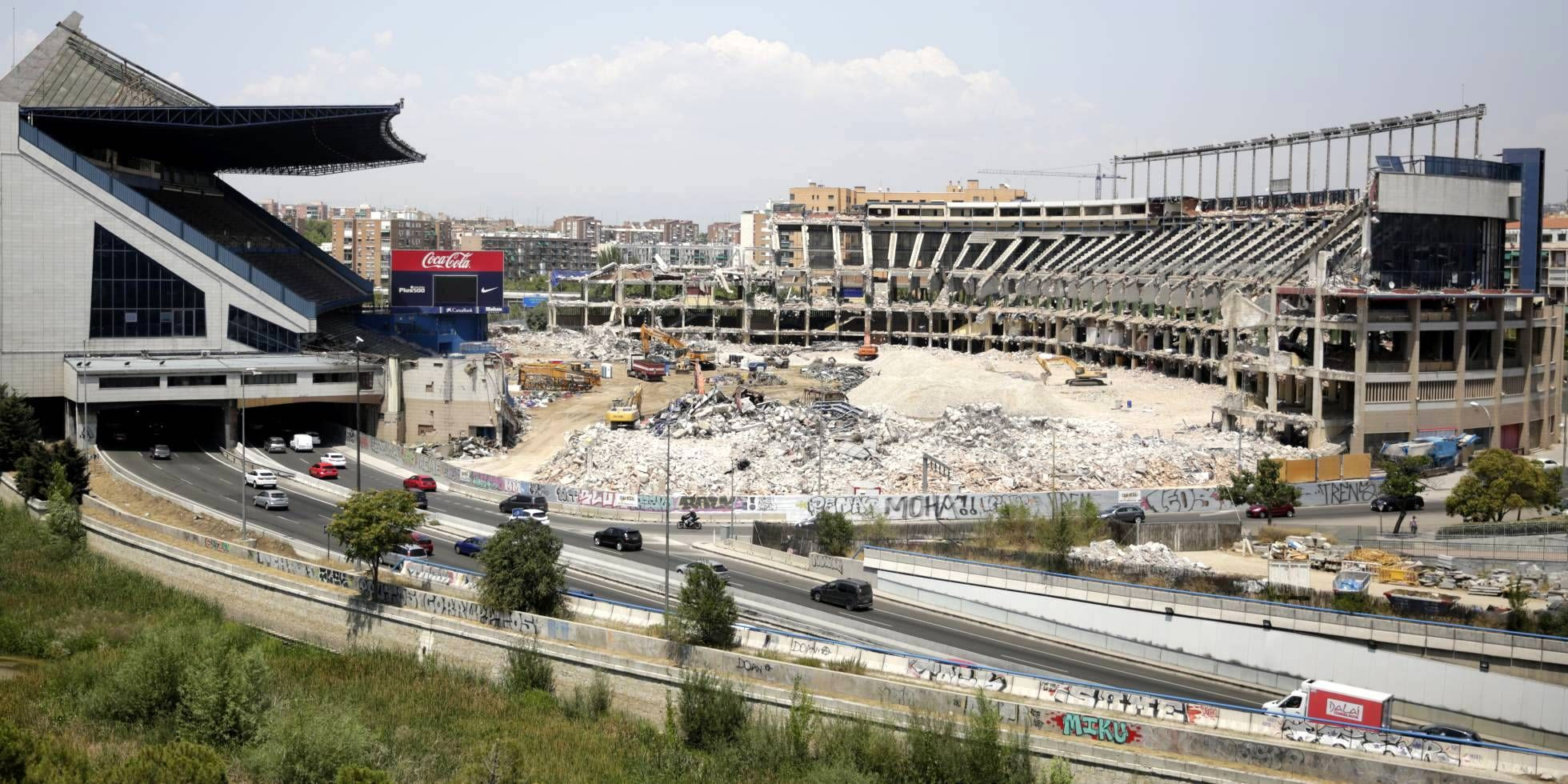 Η κατεδάφιση του “Βιθέντε Καλντερόν” ξεκίνησε πριν ενάμιση χρόνο, τον Φεβρουάριο του 2019. Ήταν ένα περίπλοκο έργο επειδή το γήπεδο βρισκόταν χτισμένο πάνω από τον αυτοκινητόδρομο Μ-30, αλλά και δίπλα στον ποταμό Μανθανάρες. Τα έξοδα της κατεδάφισης ανέλαβαν από κοινού η Ατλέτικο και η ζυθοποιία Mahou, σε μια ζώνη που εκτείνεται σε έκταση 193.804 τετραγωνικών μέτρων. Οι εργασίες είχαν σταματήσει προσωρινά, λόγω καταγγελιών που έγιναν από οικολογικές οργανώσεις, επειδή πολλά μπάζα από το παλιό γήπεδο κατέληγαν μέσα στον Μανθανάρες. Αφού βρέθηκε φόρμουλα για να καθαριστεί το ποτάμι και να αποφευχθούν ανάλογες ενέργειες στο υπόλοιπο του έργου, η κατεδάφιση συνεχίστηκε από τον περασμένο Απρίλιο.