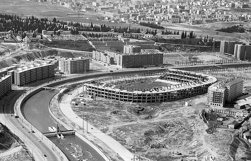 - Το 1954 έγινε η πρώτη επέκταση στα πέταλα με αποτέλεσμα η χωρητικότητα να φτάσει τις 125.000, καθιστώντας το γήπεδο το μεγαλύτερο σε όλη την Ευρώπη. Ένα χρόνο αργότερα, το 1955, η Γενική Συνέλευση των μετόχων, αποφάσισε ομόφωνα να δώσει καινούργιο όνομα στο στάδιο προς τιμή του προέδρου του συλλόγου, Σαντιάγο Μπερναμπέου ντε Γέστε.