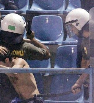 Οι -δυσοίωνες- προβλέψεις δεν έπεσαν έξω, με τους οπαδούς της ΑΕΚ και του Ατρομήτου (πληροφορίες αναφέρουν ότι είχαν εισχωρήσει ανάμεσα σε αυτούς και οπαδοί του Παναθηναϊκού) να πλακώνονται, αφού οι τελευταίοι μπήκαν στις θύρες των πρώτων. Τότε, ο πρόεδρος της “κιτρινόμαυρης” ΠΑΕ, Ντέμης Νικολαϊδης προχώρησε σε μία άκρως πρωτοφανή απόφαση για τα ελληνικά δεδομένα, δίνοντας στη δημοσιότητα δύο ονόματα οπαδών της “Ένωσης” οι οποίοι αναγνωρίστηκαν και είχαν συμμετοχή στα επεισόδια. Κάπου εκεί ήρθε το μεγάλο ρήγμα με της διοίκησης με τους οργανωμένους το οποίο γιγαντώθηκε μερικούς μήνες μετά στο γήπεδο της Λιβαδειάς. Μετά από επεισόδια με τις αστυνομικές δυνάμεις, τα πράγματα εκτραχύνθηκαν με αποτέλεσμα να καεί το βανάκι του Alpha και να διακοπεί η τηλεοπτική μετάδοση του αγώνα.