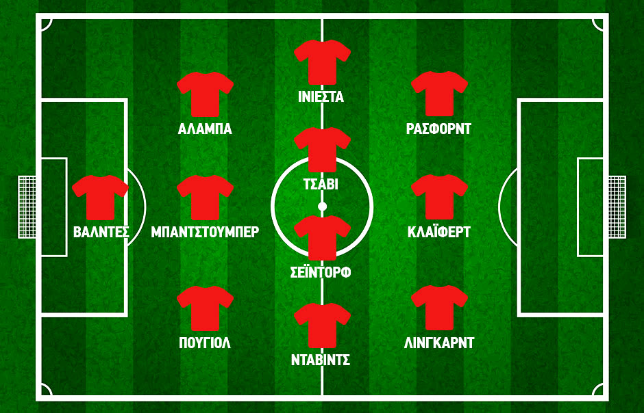 Περνάμε τώρα στα έντεκα ταλέντα που καθιέρωσε πρώτος ο Λουίς Φαν Χάαλ. Όλοι τους πραγματοποίησαν το ντεμπούτο τους υπό τις οδηγίες του Ολλανδού σε μικρές ηλικίες, από τα 16 μέχρι και τα 21 τους χρόνια. Επιλέξαμε τρεις παίκτες από τον Άγιαξ (Ντάβιντς, Σέιντορφ & Κλάιφερτ), τέσσερις από τη Μπαρτσελόνα (Τσάβι, Πουγιόλ, Βαλντές & Ινιέστα), δυο από τη Μπάγερν (Μπάντστουμπερ & Αλάμπα) και δυο από τη Μάντσεστερ Γιουνάιτεντ (Λίνγκαρντ & Ράσφορντ). Σχεδόν βόλευε να φτιάξουμε μια ενδεκάδα με ποδοσφαιρική λογική, οπότε προσαρμόσαμε κάπως μερικές θέσεις και φτιάξαμε ένα 3-4-3, όπως βλέπετε και στη γραφική απεικόνιση. Πάμε να τους δούμε έναν-έναν αναλυτικά, με χρονολογική σειρά εμφάνισης στα γήπεδα.