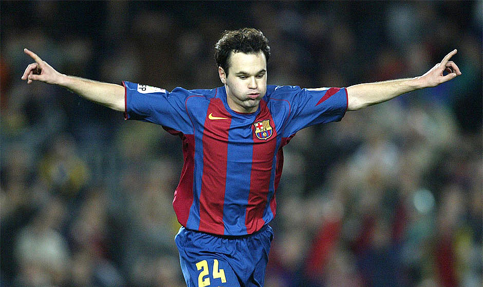 Ο Αντρές Ινιέστα πανηγυρίζει ένα γκολ του τον Δεκέμβριο του 2004.