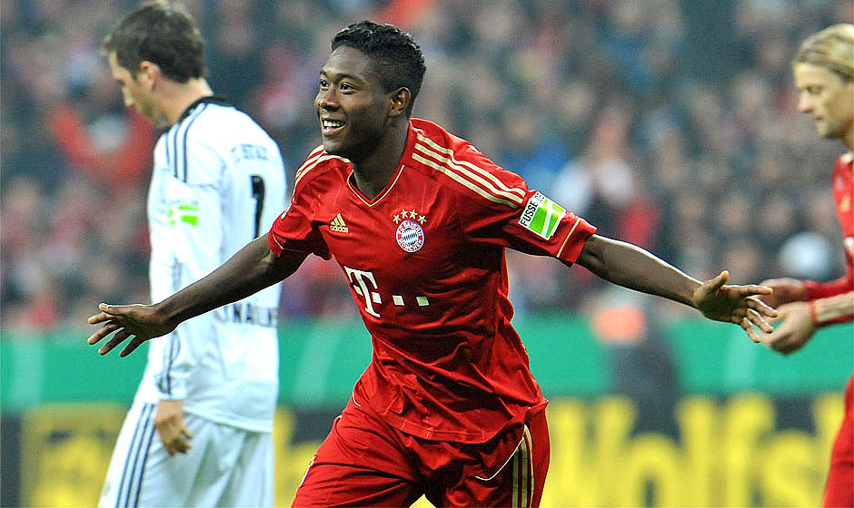 Ο Νταβίντ Αλάμπα πανηγυρίζει ένα γκολ του με τη Μπάγερν το 2011, σε ματς του γερμανικού Κυπέλλου (AP Photo/Kerstin Joensson)