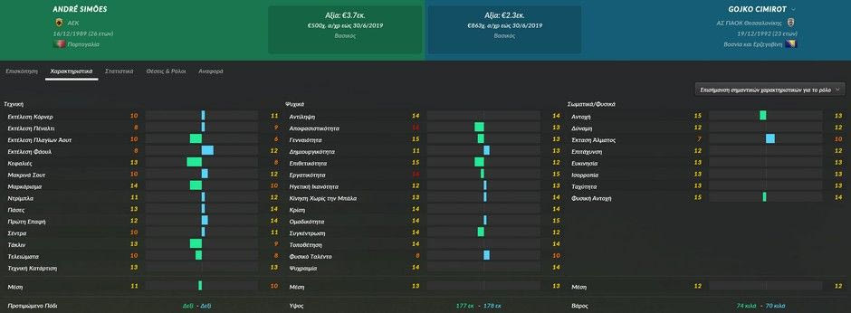 Σαν σε συνέχεια της προηγούμενης μάχης, το υψηλό 13-13 ανάμεσα σε Σιμόες και Τσίμιροτ στα ψυχικά χαρακτηριστικά έρχεται να μας καταδείξει πως στο κέντρο του γηπέδου… θα φάει η μύγα σίδερο. Στα σωματικά χαρακτηριστικά υπάρχει ισοπαλία στα πέντε από τα οκτώ χαρακτηριστικά, ενώ στα τεχνικά ο Σιμόες είναι στο 11-10, όντας καλύτερος στα μαρκαρίσματα και στις κεφαλιές με +4 και +5 αντίστοιχα.