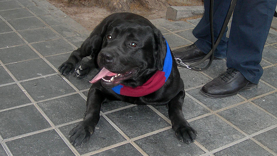 Ο “μπλαουγκράνα” σκυλάκος στη Βαλένθια, την ημέρα του τελικού.