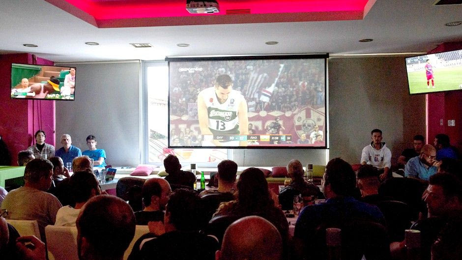 Σκηνή έκτη: Ιδιο μέρος, διαφορετικό το σκηνικό. Οι πάντες στη θέση τους, έτοιμοι για το τζάμπολ του τρίτου τελικού μεταξύ του Ολυμπιακού και Παναθηναϊκού στο ΣΕΦ. Το μαγαζί κατάμεστο.