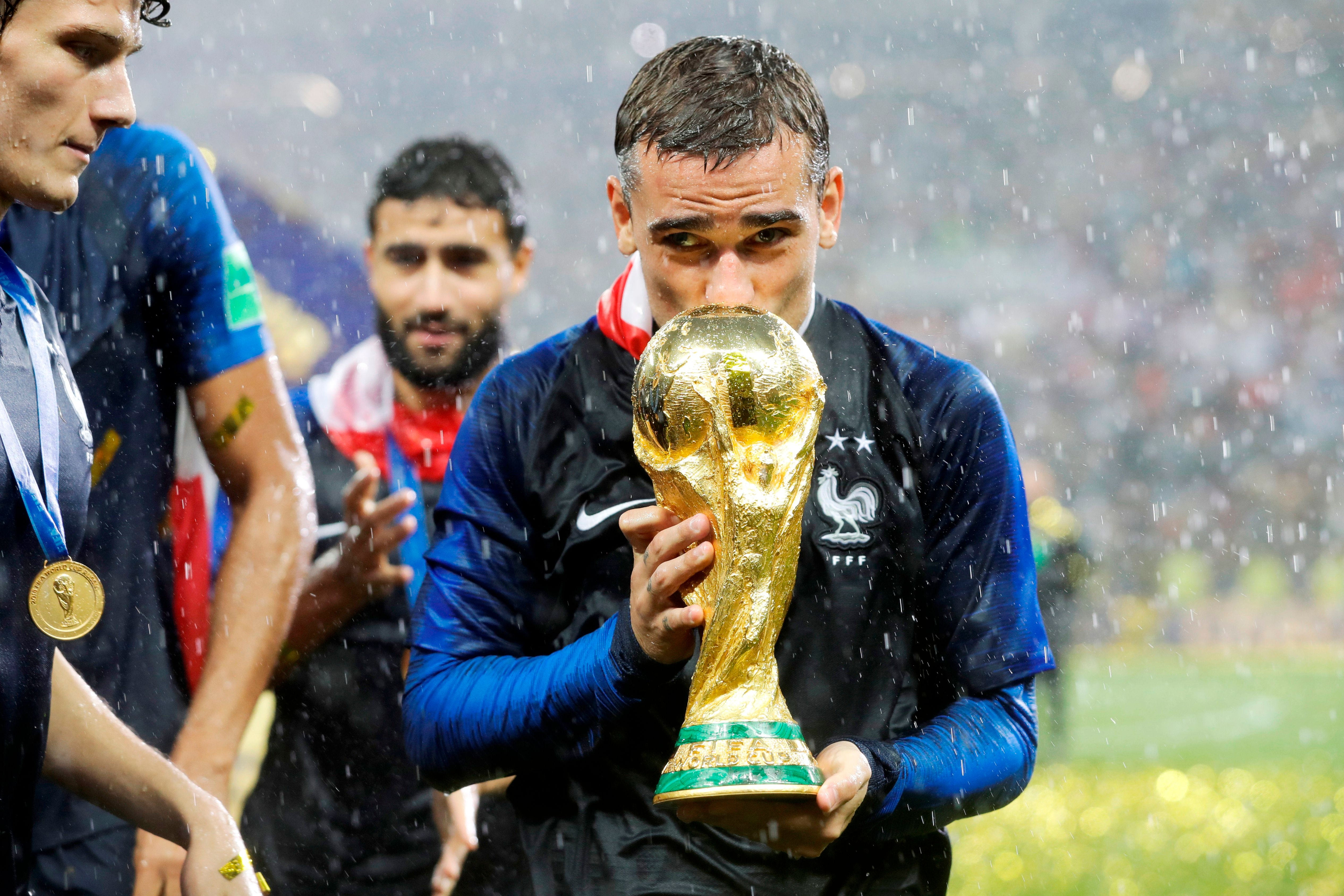 Ο Γκριεζμάν με το τρόπαιο του Παγκοσμίου Κυπέλλου (15/7/2018). AP