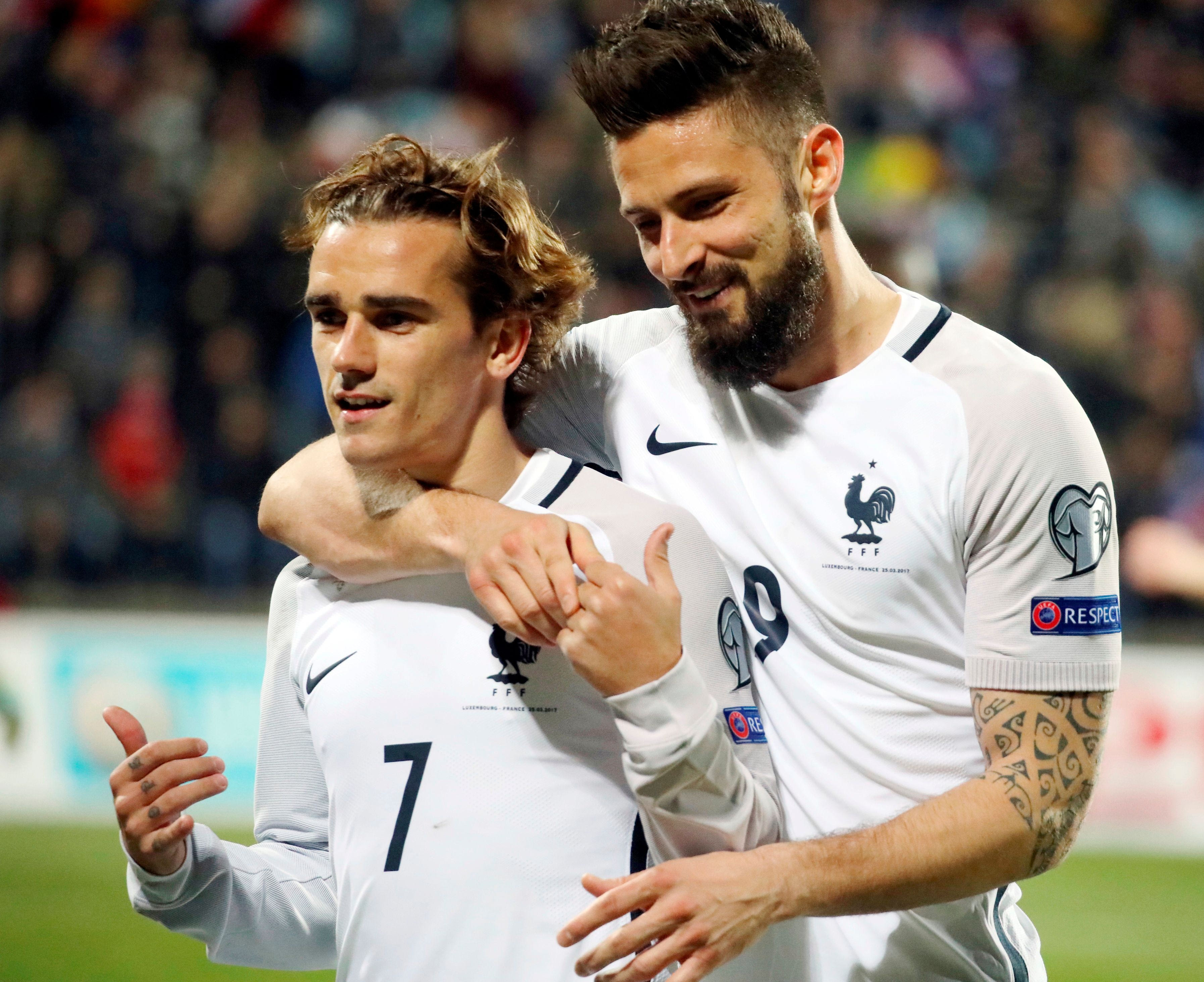 Γκριεζμάν και Ζιρού σε αγώνα της Εθνικής Γαλλίας (25/3/2017). AP