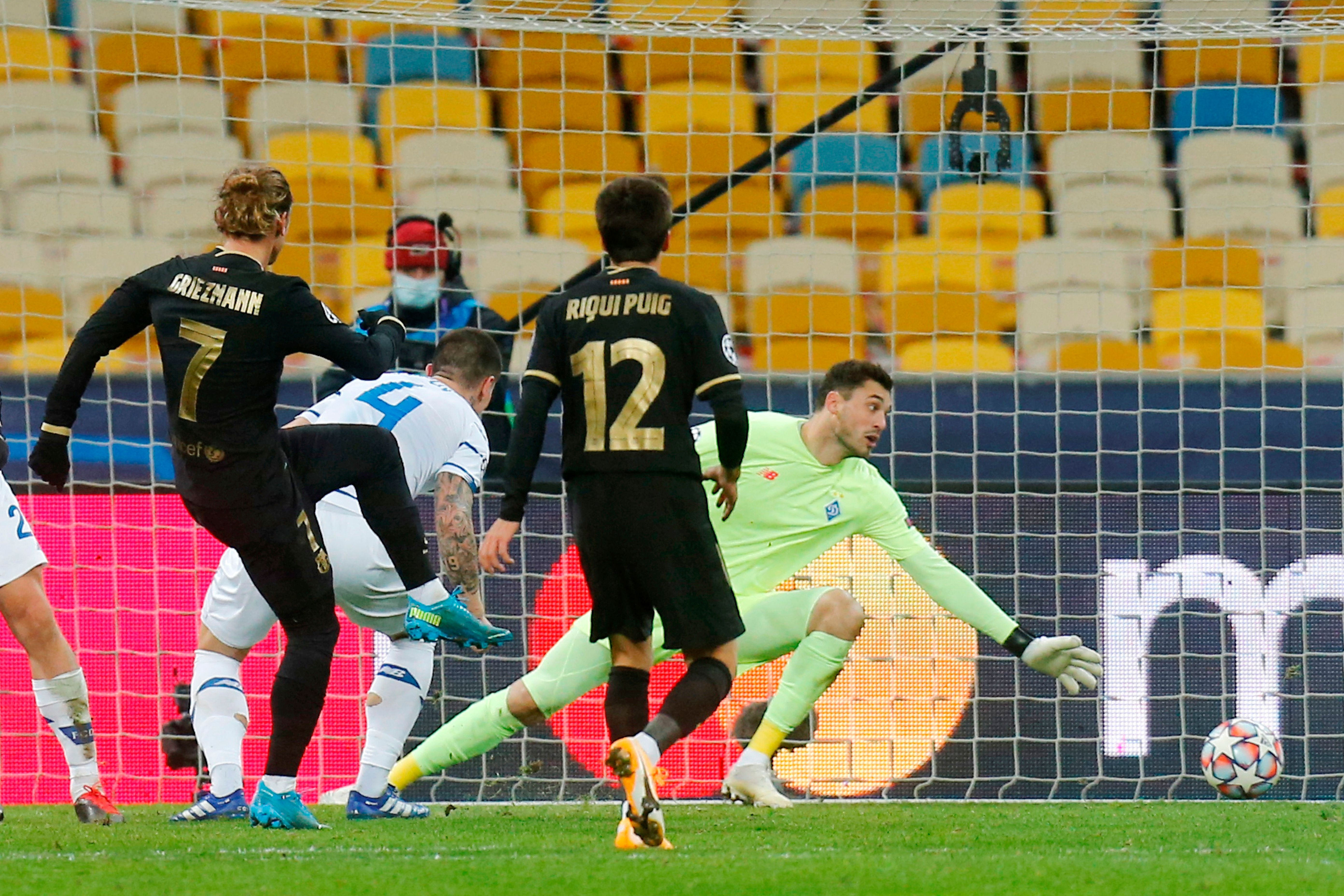 Ο Γκριεζμάν σκοράρει εναντίον της Ντιναμό στο Κίεβο για τους ομίλους του Champions League (24/11/2020). AP