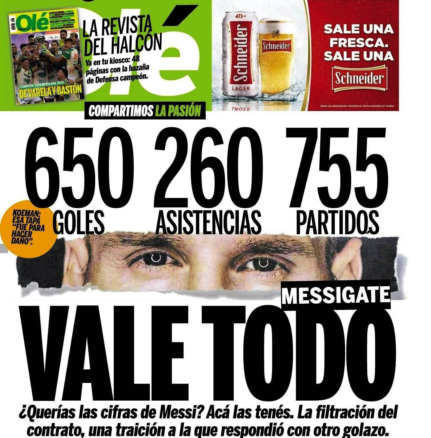 Η απάντηση της αργεντίνικης Olé στην ισπανική El Mundo: "Τα αξίζει όλα" λέει ο τίτλος και ακολουθεί ο υπότιτλος: "Ήθελες τα νούμερα του Μέσι; Εδώ τα έχεις". ole.com