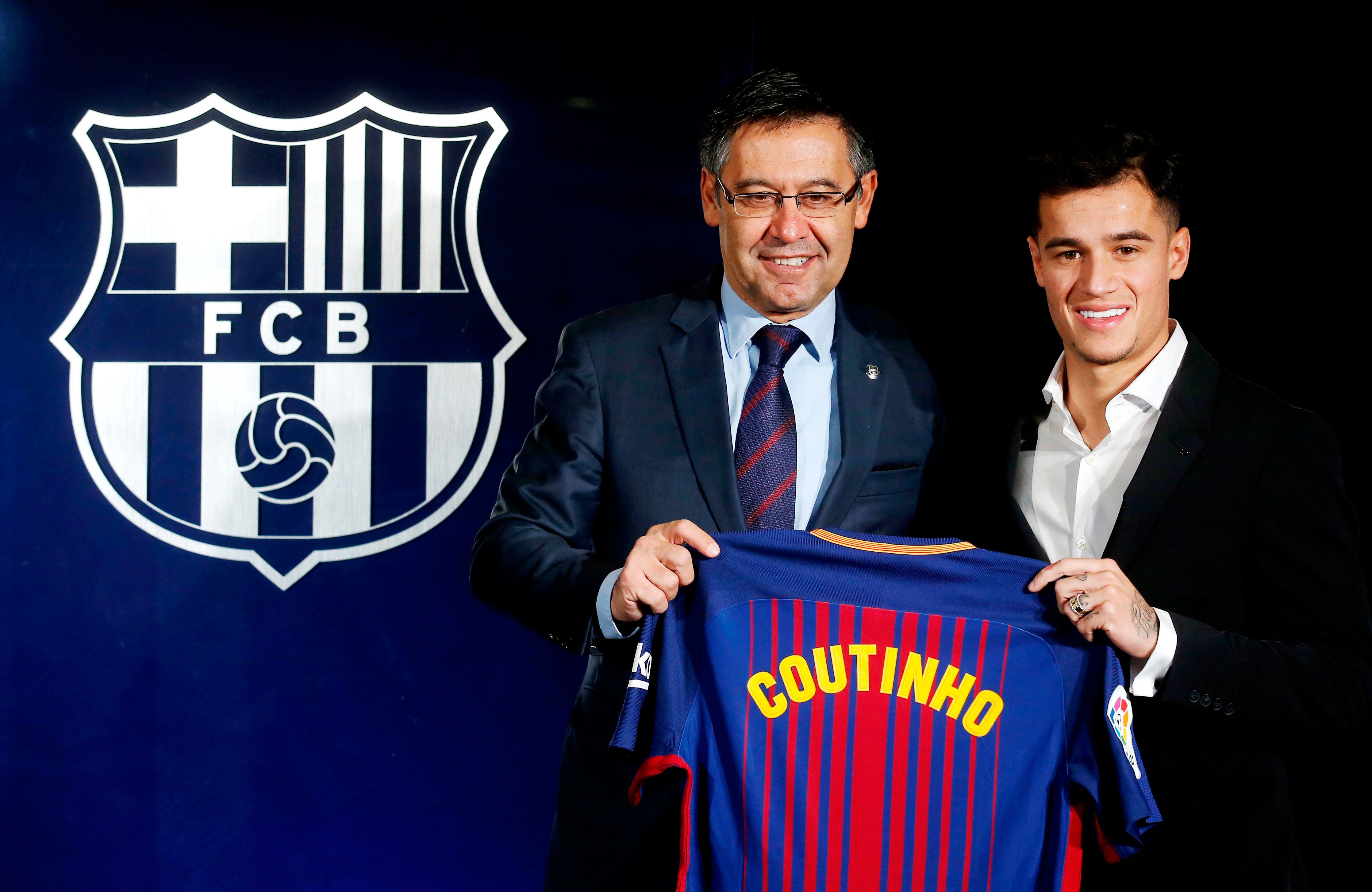 Μπαρτομέου και Κοουτίνιο στην επίσημη παρουσίαση του Βραζιλιάνου από την Μπαρτσελόνα (8/1/2018). ⓒ 2021 Manu Fernandez/Associated Press