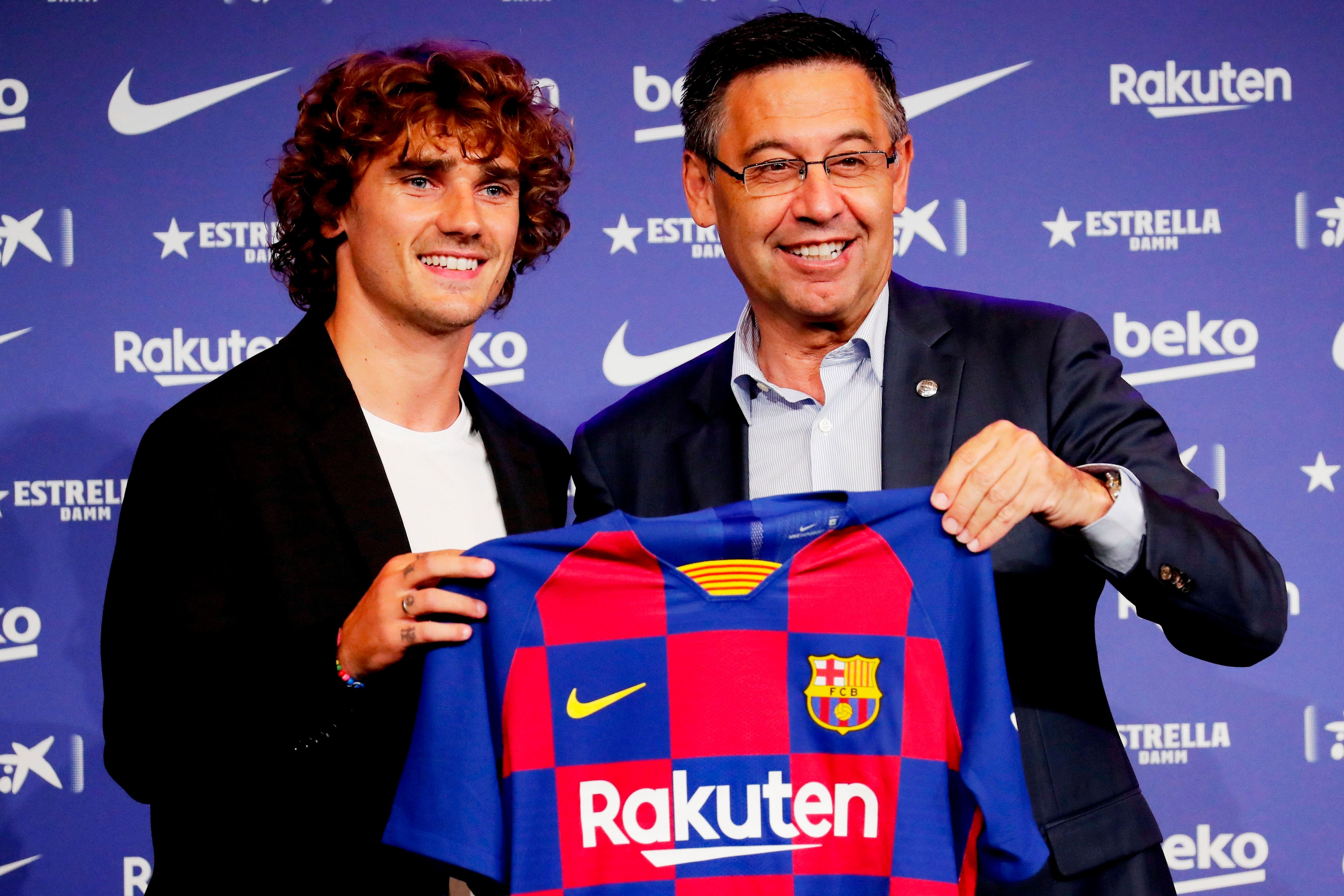 Γκριεζμάν και Μπαρτομέου στην επίσημη παρουσίαση του Γάλλου από την Μπαρτσελόνα (14/7/2019). ⓒ 2021 Emilio Morenatti/Associated Press