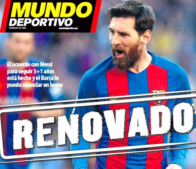 Το πρωτοσέλιδο της Mundo Deportivo στις 5 Ιουλίου 2017 με τίτλο "Ανανέωσε". mundodeportivo.com