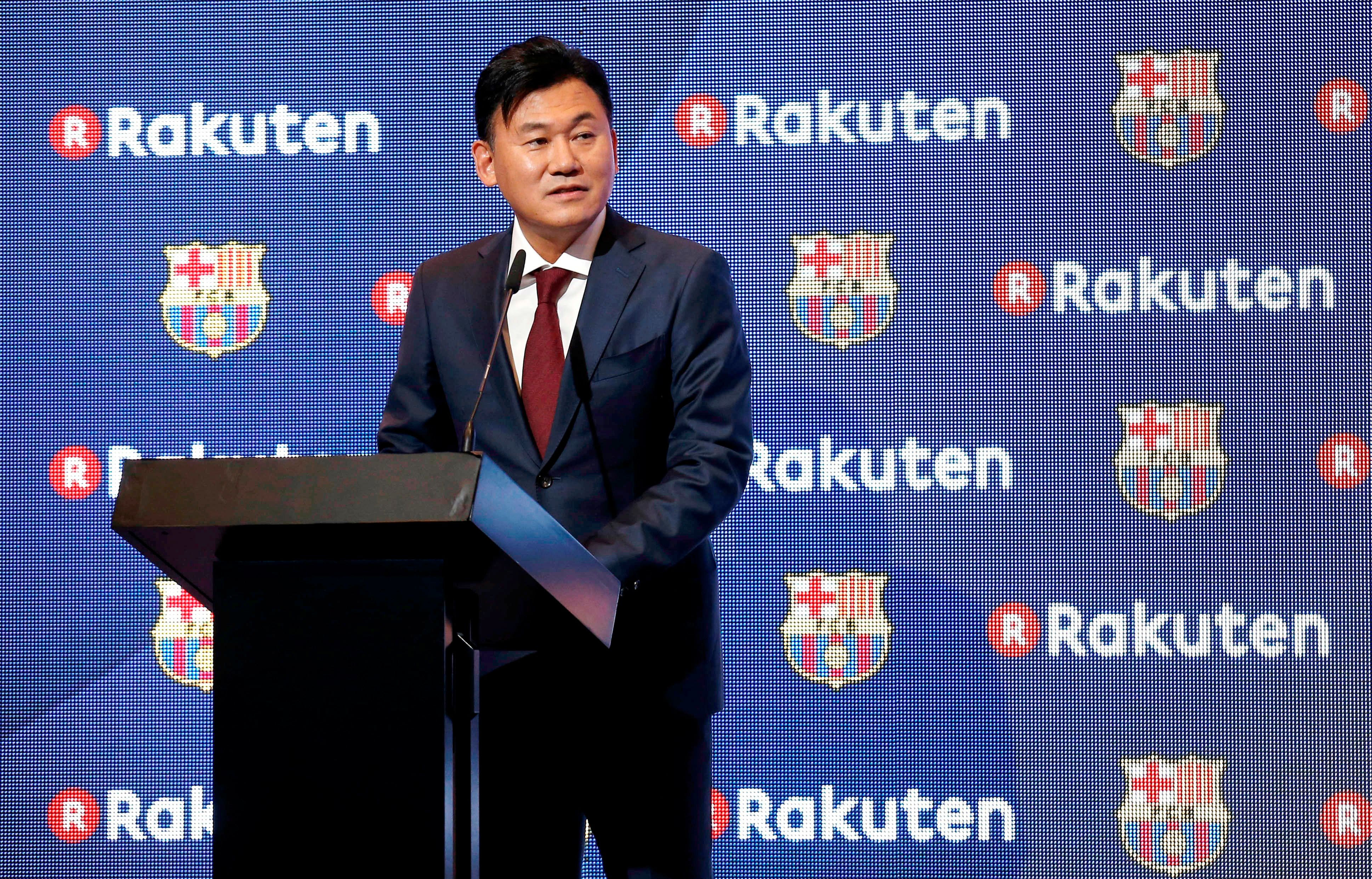 Ο Χιρόσι Μικιτάνι, CEO της Rakuten, βασικού χορηγού της Μπαρτσελόνα. ⓒ 2021 AP Photo/Associated Press