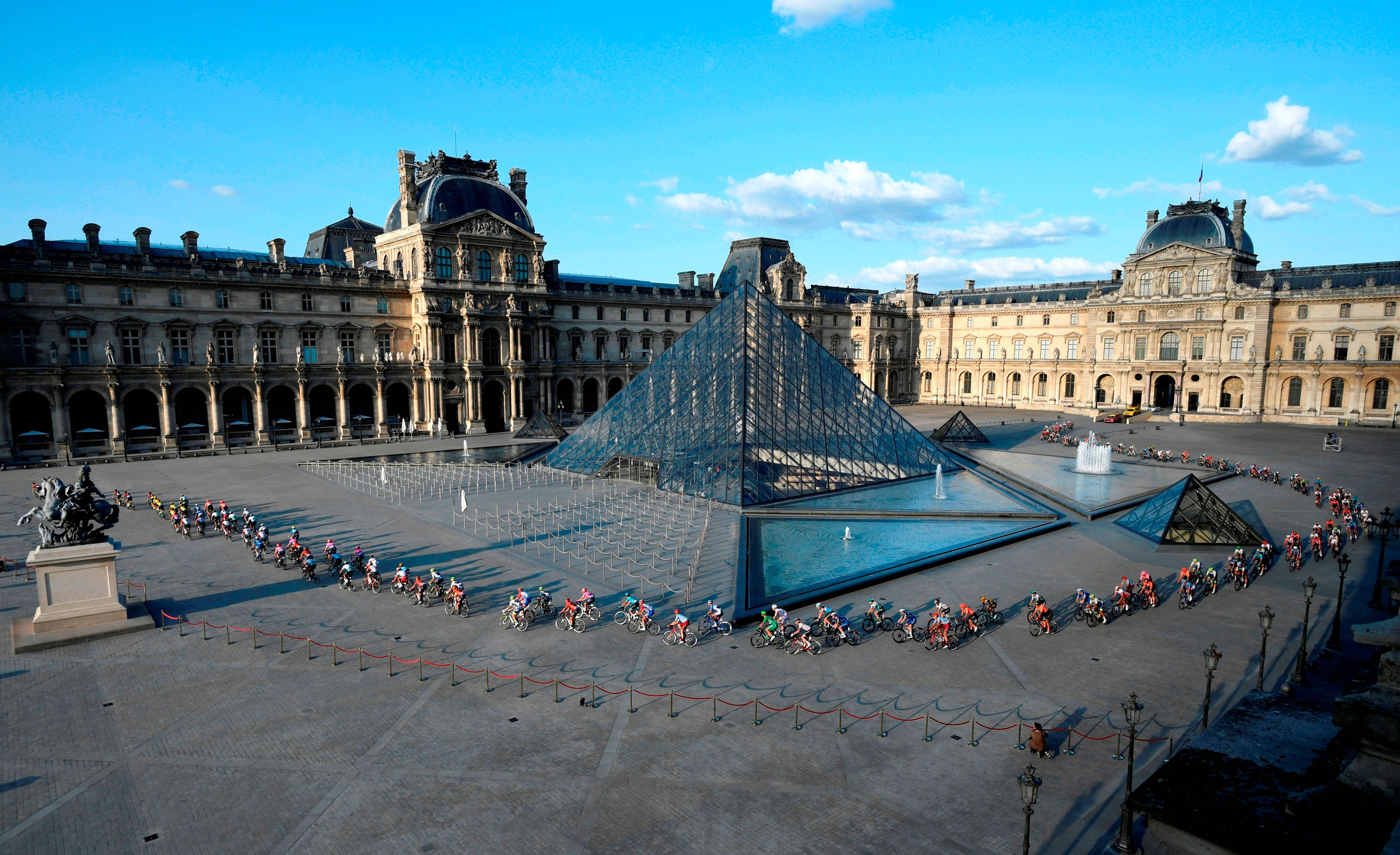 Το πελοτόν περνάει δίπλα από την πυραμίδα του Λούβρου.