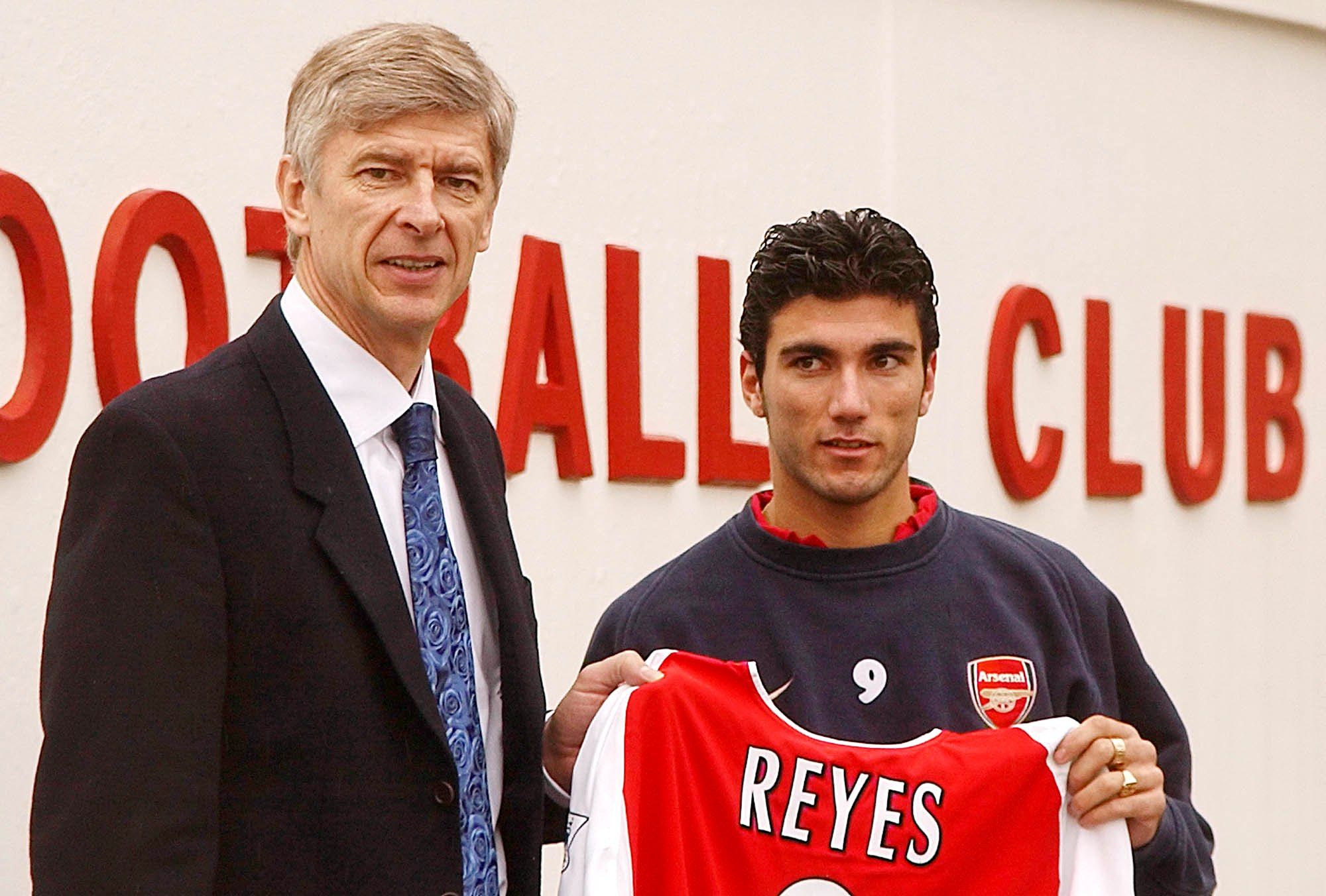 Αρσέν Βενγκέρ και Χοσέ Αντόνιο Ρέγιες στην επίσημη παρουσίαση του Ισπανού από την Άρσεναλ (30/1/2004) AP