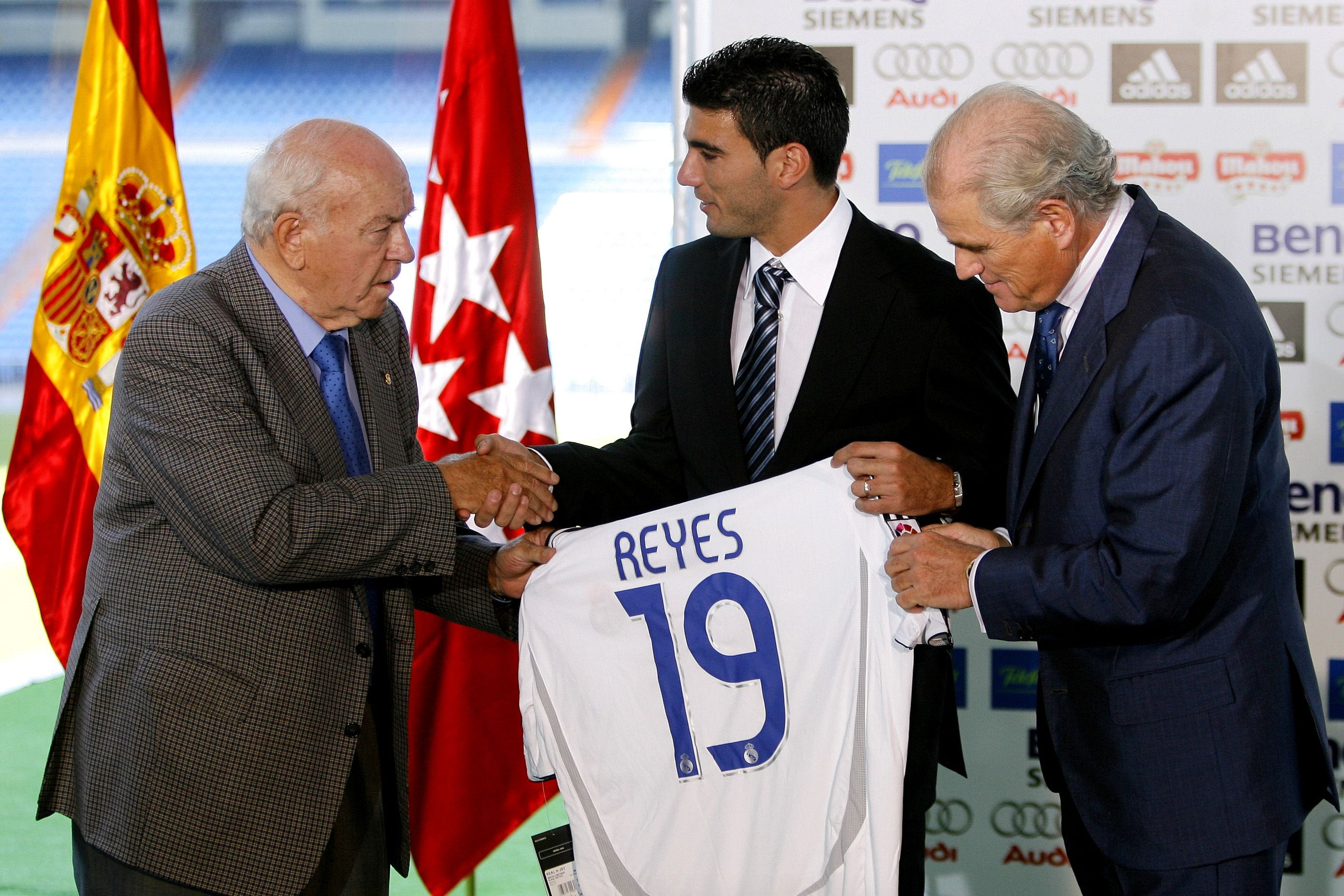 Αλφρέδο Ντι Στέφανο, Χοσέ Αντόνιο Ρέγιες και Ραμόν Καλντερόν, στην επίσημη παρουσίαση του δεύτερου από τη Ρεάλ Μαδρίτης (8/9/2006) AP