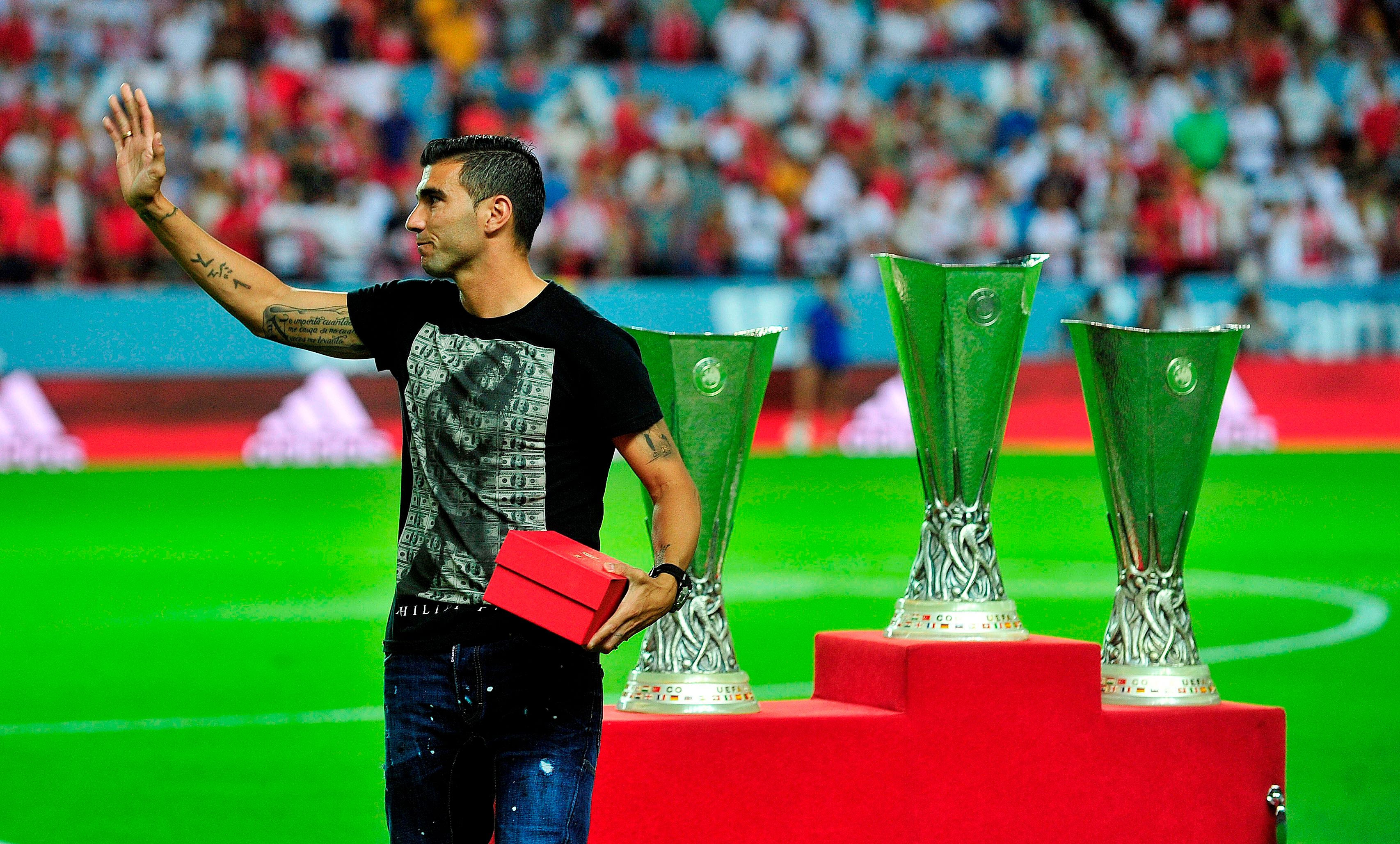 Ο Χοσέ Αντόνιο Ρέγιες αποχαιρετάει τη Σεβίγια στο "Σάντσεθ Πιθχουάν". Δεσπόζουν τα τρία Europa League που κατέκτησε με τους "νερβιονένσες" (14/8/2016)