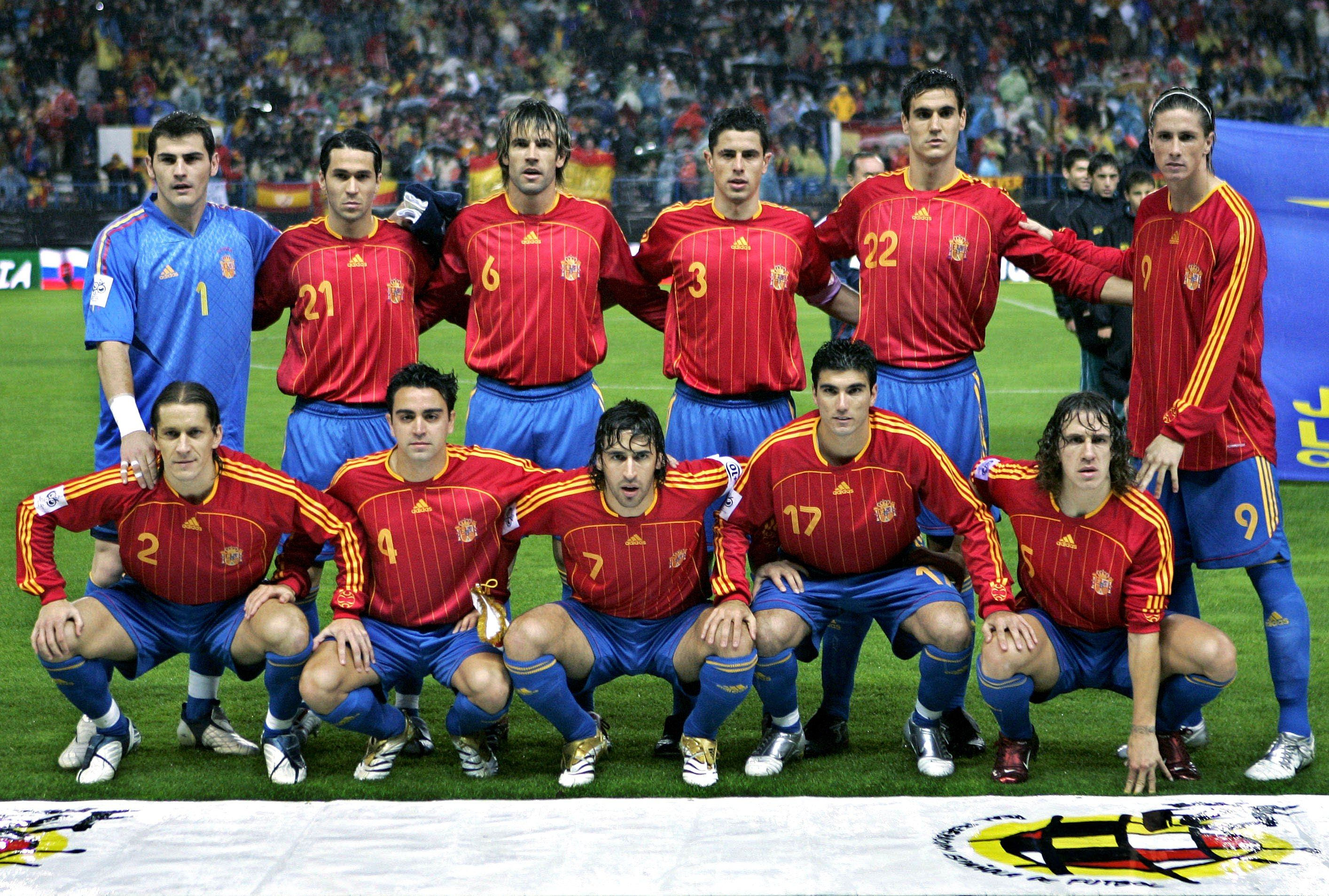 Η Εθνική Ισπανίας πριν από επίσημο παιχνίδι στο "Βιθέντε Καλντερόν". Πίσω, από αριστερά, Κασίγιας, Λουίς Γκαρθία, Αλμπέλδα, Ντελ Όρνο, Ιμπάνιεθ, Τόρες. Μπροστά, από αριστερά, Σαλγάδο, Τσάβι, Ραούλ, Ρέγιες, Πουγιόλ (12/11/2005) AP