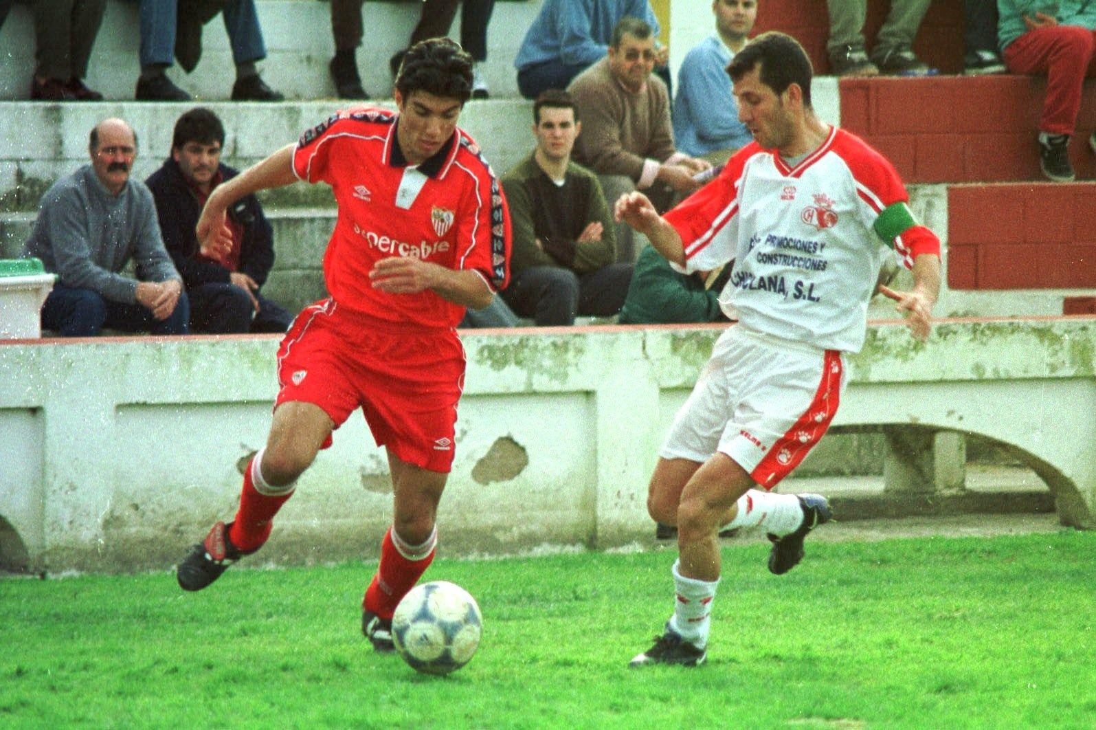 Ο Χοσέ Αντόνιο Ρέγιες (αριστερά) σε αγώνα της Σεβίγια Β με την Τσικλάνα για την Τερθέρα Ντιβισιόν (2000)