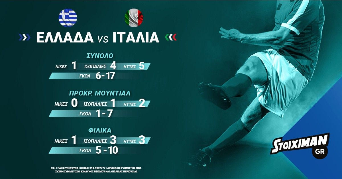 Ελλάδα – Ιταλία με 300+ στοιχήματα στο Stoiximan.gr