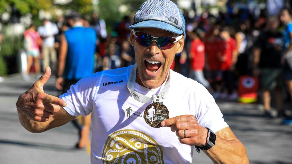 Ο υπερμαραθωνοδρόμος Κωνσταντίνος Καρνάζης με το μετάλλιο της διοργάνωσης από φύκι της PHEE Babis Giritziotis