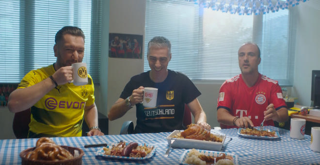 Η συνέχεια έχει μουσική υπόκρουση και…. γεύση Γερμανίας! Με τους Άγγελο Στυλιάδη, Γιώργο Λιώρη, Γιώργο Βασιλείου και τη μοναδική Λίλα Κουντουριώτη με αμφίεση Βαυαρικών Άλπεων να προσφέρει τα σπιτικά της Brezel και τον Τάσο Μπαϊρακτάρη να εισέρχεται για το παραδοσιακό τσούγκρισμα «Prost»! Και ενώ ο Γρηγόρης Παπαβασιλείου νομίζει ότι τα έχει δει όλα, το αποκορύφωμα έρχεται με την αμφίεση της Λίλας Κουντουριώτη με μελαχρινό και latin look πλέον καθώς κοιτάει σε ένα tablet το πλούσιο premium περιεχόμενο του Novasports για τη νέα σεζόν!