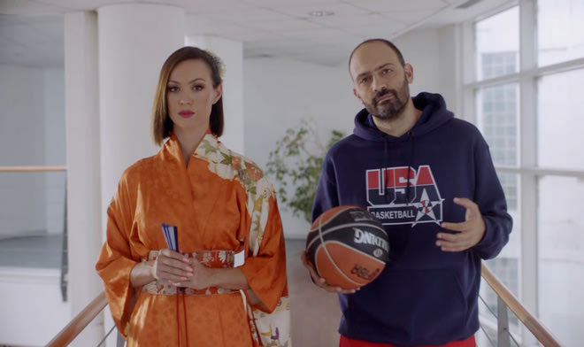 Οι… γλωσσικές εκπλήξεις δεν σταματούν όμως εκεί για τον Γρηγόρη, καθώς στη συνέχεια διασταυρώνεται με τους Ισίδωρο Πρίντεζη και Γιαννίκο Δούσκα και αρχίζουν τα… γαλλικά! Η συνέχεια όμως έχει χρώμα και άρωμα Άπω Ανατολής, καθώς στα γραφεία εμφανίζεται η μπασκετική ομάδα με το κιμονό της MVP Δώρας Παντέλη να κλέβει τις εντυπώσεις, ενώ ο… made in USA Χρήστος Καούρης αλλά και οι experts Δημήτρης Καρύδας και Νικήτας Αυγουλής σχολιάζουν με τον δικό τους ξεχωριστό μπασκετικό τρόπο τι έρχεται στο Novasports.