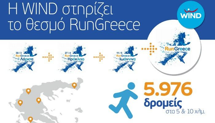 Αθήνα 27 Μαΐου 2014. Τον γύρο της γης σε χιλιόμετρα (περίπου 40.000) έκαναν οι σχεδόν 6.000 δρομείς (5976 για την ακρίβεια) που έτρεξαν στα τρία πρώτα Run Greece του 2014 που έγιναν διαδοχικά σε Λάρισα, Ηράκλειο Κρήτης και Ιωάννινα με διοργανωτή τον ΣΕΓΑΣ και τις τοπικές του Ενώσεις και μεγάλο χορηγό για δεύτερη συνεχόμενη χρονιά την WIND.