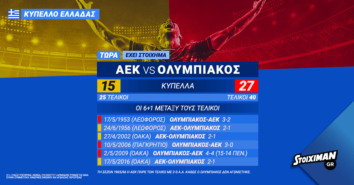 O τελικός ΑΕΚ-Ολυμπιακός με σούπερ προσφορά* & Fantasy τουρνουά στη Stoiximan