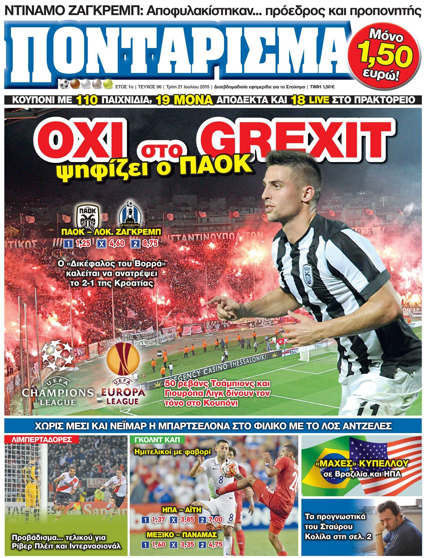 Το "Ποντάρισμα" της Τρίτης 21 Ιουλίου προσφέρει όλη την ειδησεογραφία και τα στατιστικά για τα πρωταθλήματα του κουπονιού, έχοντας ανοιχτή γραμμή με 40 ανταποκριτές απ' όλο τον κόσμο.
