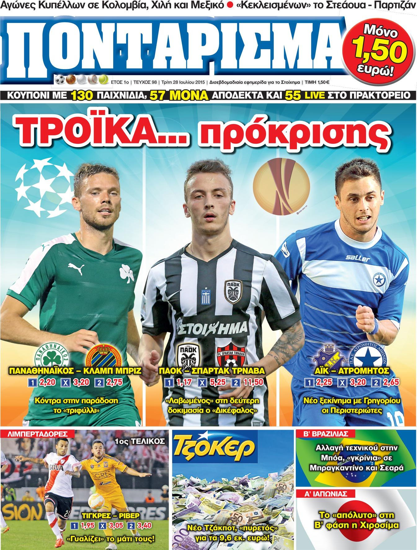 Το "Ποντάρισμα" της Τρίτης 28 Ιουλίου, προσφέρει όλη την ειδησεογραφία και τα στατιστικά για τα πρωταθλήματα του κουπονιού, έχοντας ανοιχτή γραμμή με 40 ανταποκριτές απ' όλο τον κόσμο.