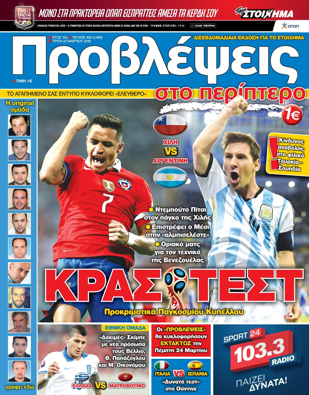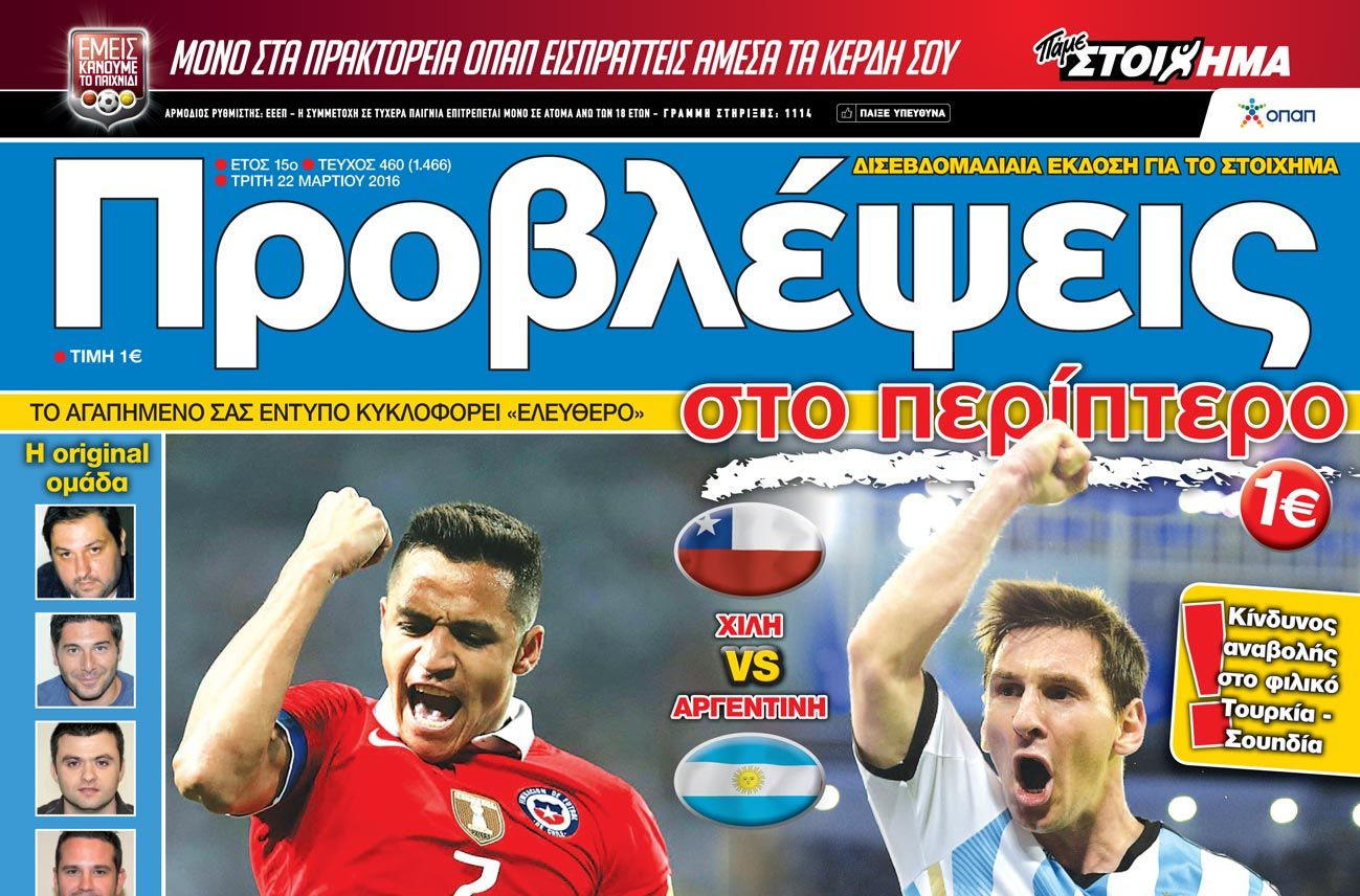 Στροφή στις εθνικές ομάδες! Οι "ΠΡΟΒΛΕΨΕΙΣ στο περίπτερο", που κυκλοφορούν την Τρίτη 22 Mαρτίου, προσφέρουν όλη την ειδησεογραφία και τα στατιστικά για τα παιχνίδια του κουπονιού και ανανεώνουν το ραντεβού τους ΕΚΤΑΚΤΩΣ για την ΠΕΜΠΤΗ 24 ΜΑΡΤΙΟΥ!