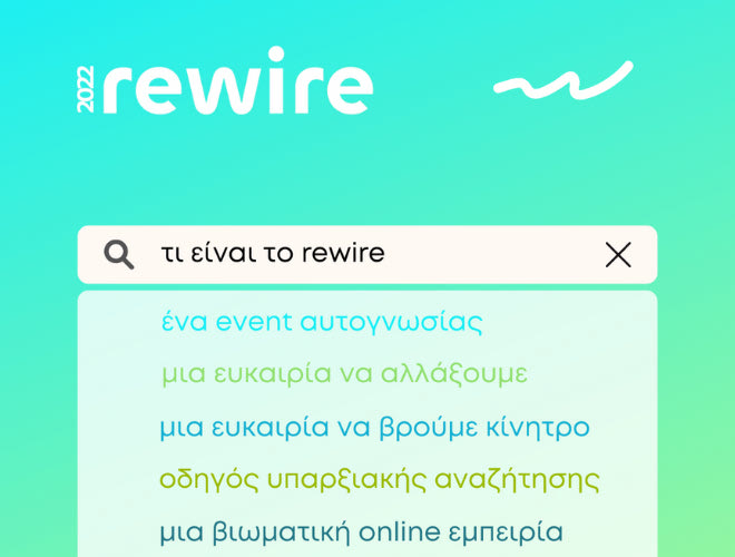 Ανακαλύψτε περισσότερα για τη νεοσύστατη κοινότητα του Rewire, δείτε την ατζέντα και τους ομιλητές και εγγραφείτε στο Rewire 2022 εντελώς δωρεάν, μέσα από την επίσημη ιστοσελίδα.