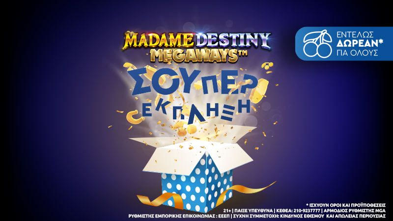 Αυτή τη φορά, την τιμητική του έχει το Madame Destiny Megaways στο online Casino της Stoiximan, με τα συναρπαστικά γραφικά, την επιβλητική ατμόσφαιρα και τη σούπερ έκπληξη* να κάνουν το παιχνίδι σου καλύτερο με εύκολη πρόσβαση από κινητό, υπολογιστή και tablet, έως τα μεσάνυχτα της Παρασκευής!