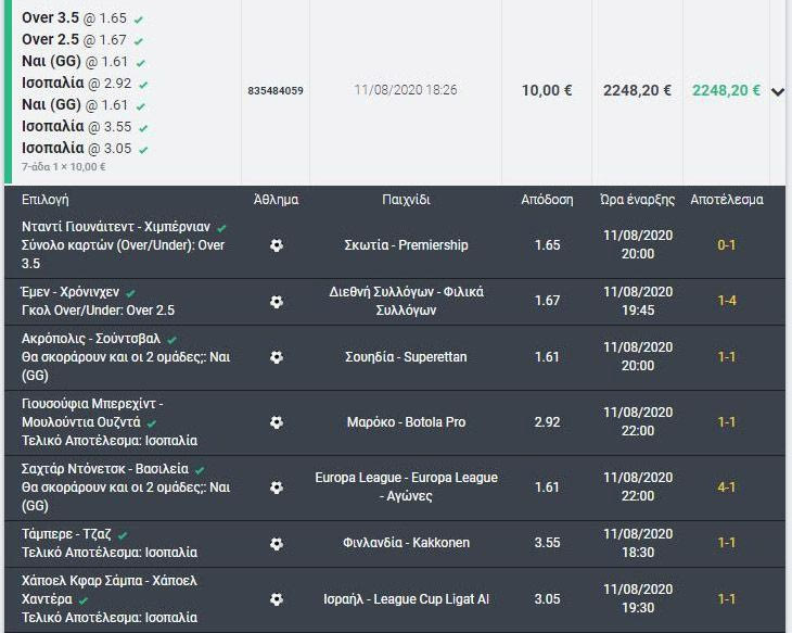 Αναλυτικά το δελτίο κερδήθηκε στις καθυστερήσεις: