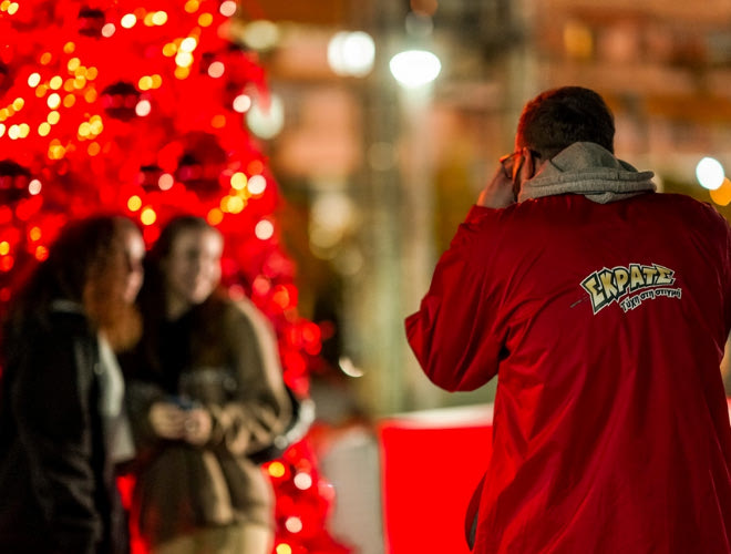 Όσοι περνούν από την περιοχή φωτογραφίζονται κάτω από κατακόκκινο δέντρο του ΣΚΡΑΤΣ, είτε μόνοι τους είτε με τη βοήθεια της προωθητικής ομάδας που βρίσκεται εκεί.