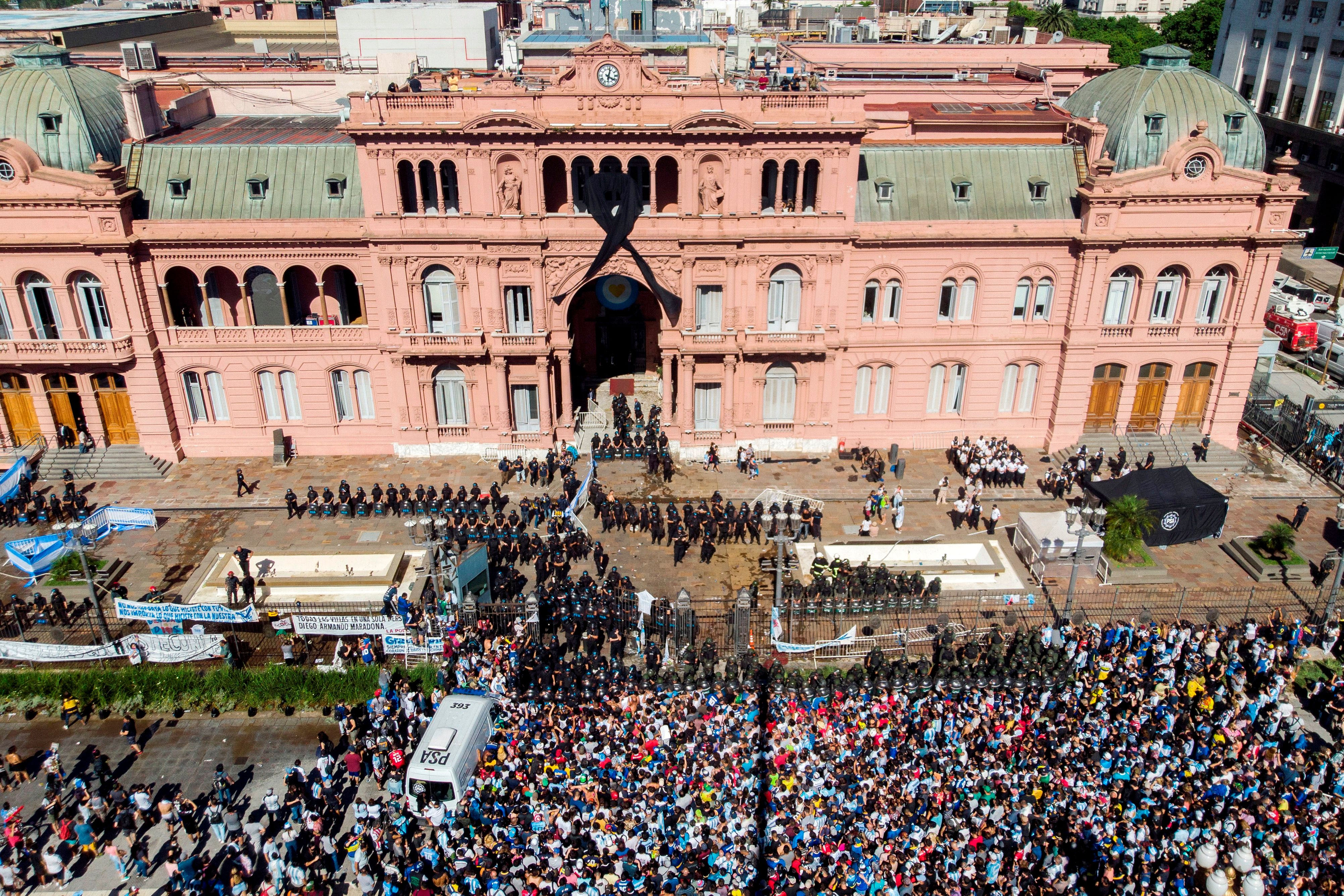 Φίλαθλοι περιμένουν έξω από το προεδρικό μέγαρο στο Μπουένος Άιρες για το λαϊκό προσκύνημα στον Ντιέγο. AP